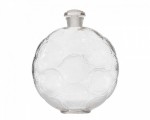 French Art Deco disk-shaped glass perfume bottle (RELIEF by FORVIL) with a design of repeating raised spirals and a matching stopper (signed LALIQUE)