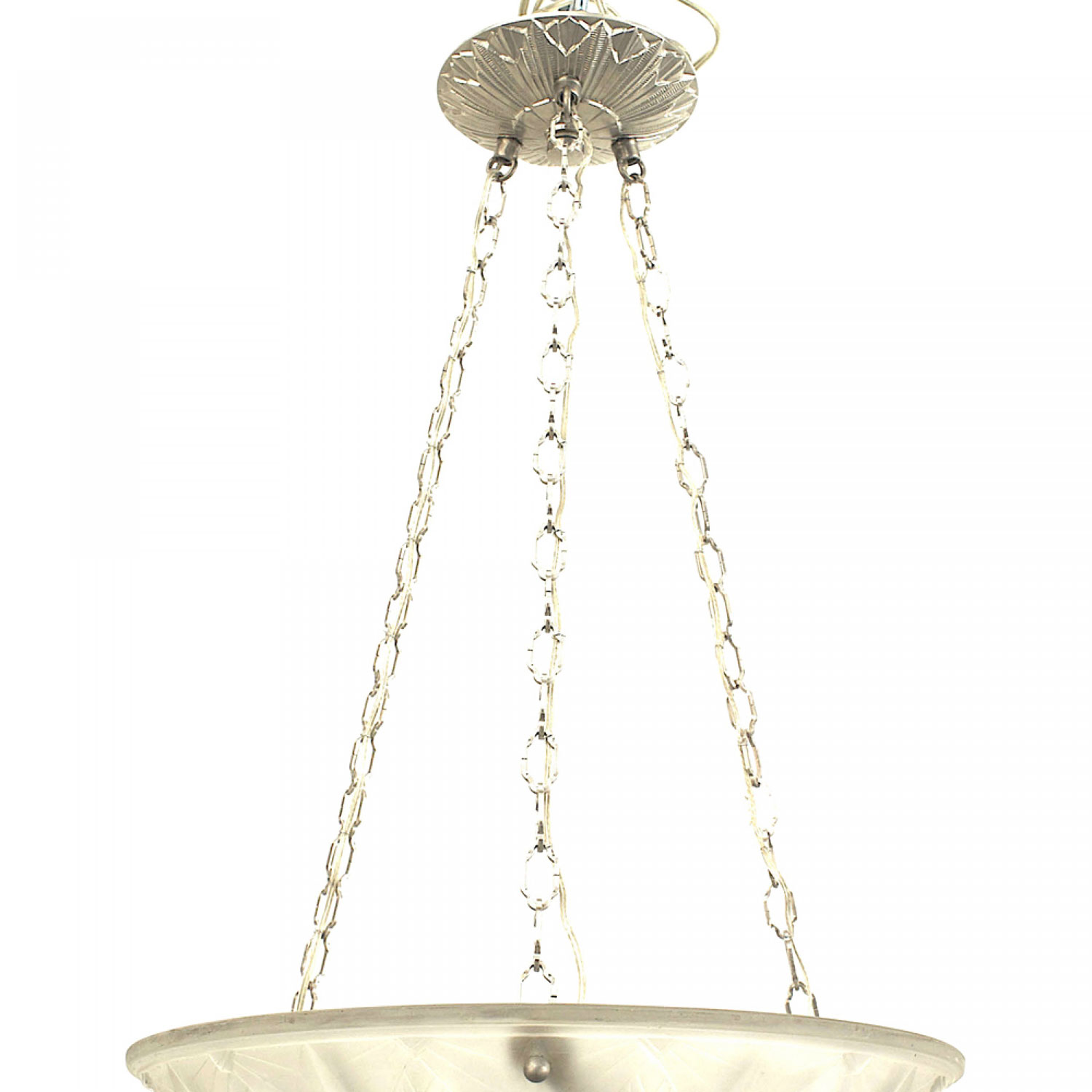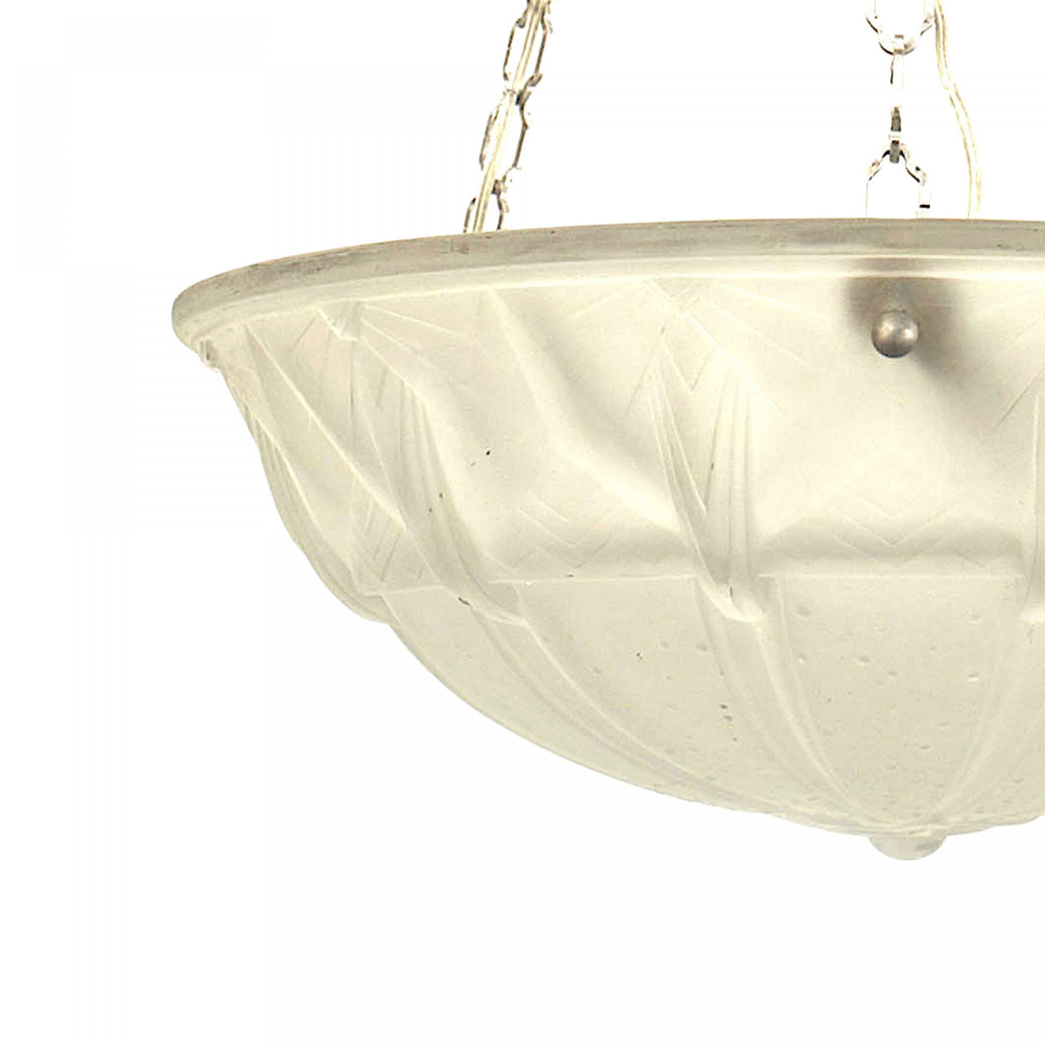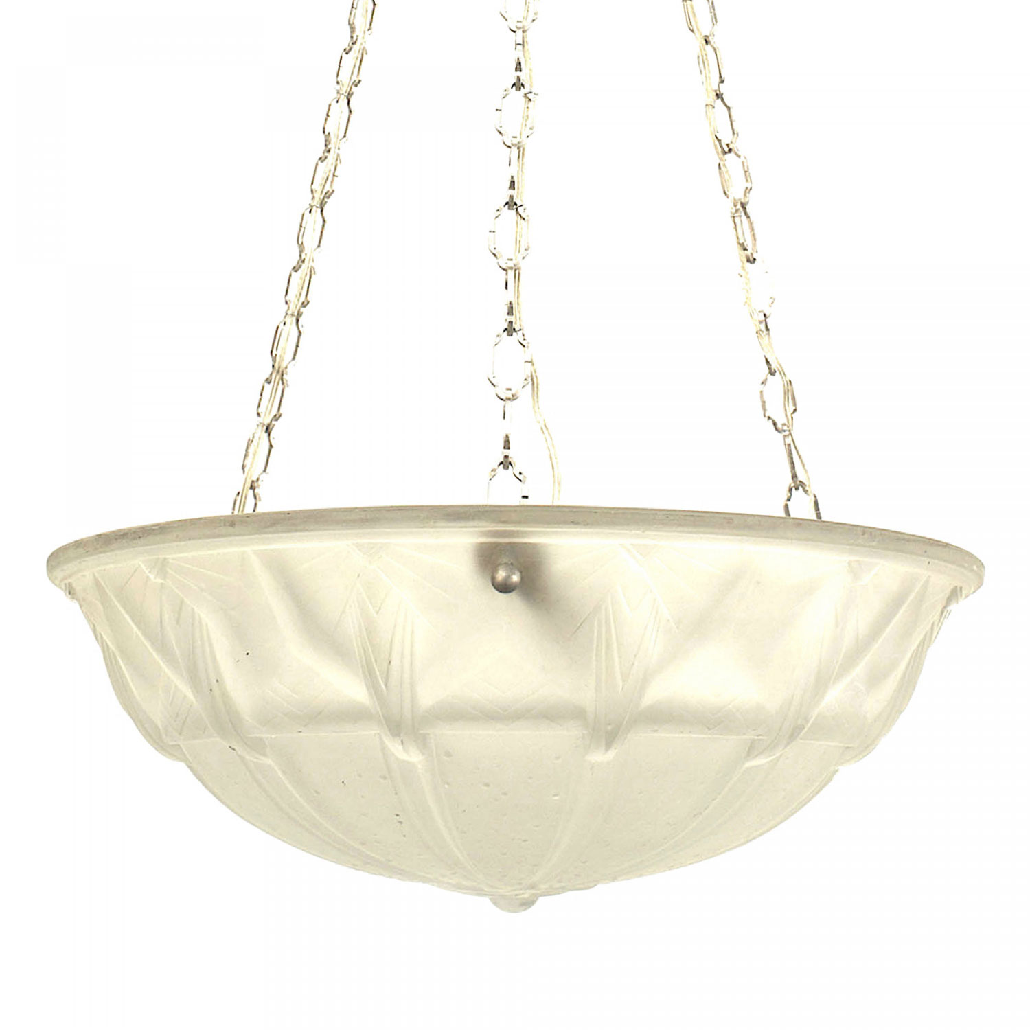 French Art Deco Frosted Glass Bowl Pendant Chandelier