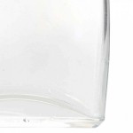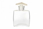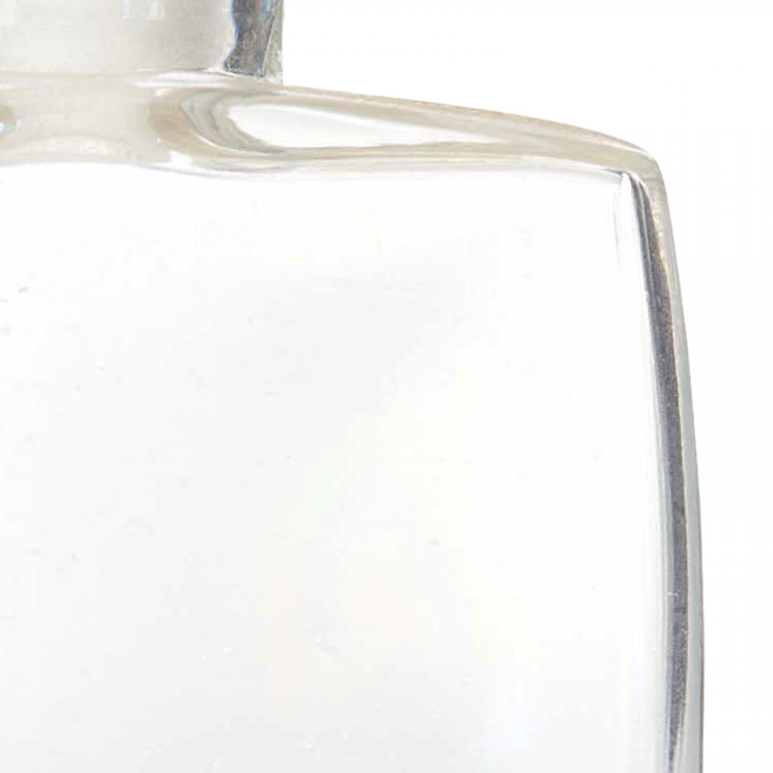 French Art Deco rectangular clear glass perfume bottle with an embossed rectangular frosted glass stopper.
