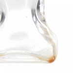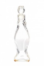 French Art Deco small curved clear glass perfume bottle with a tulip shaped stopper and the name HAVILAND embossed on bottom.