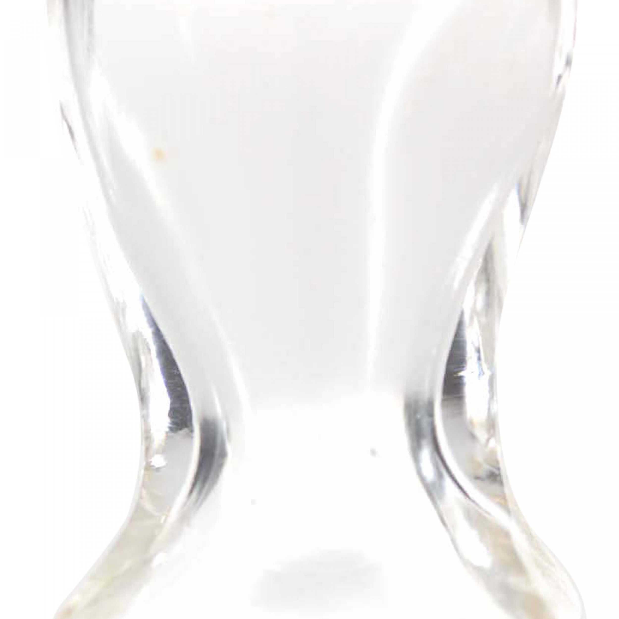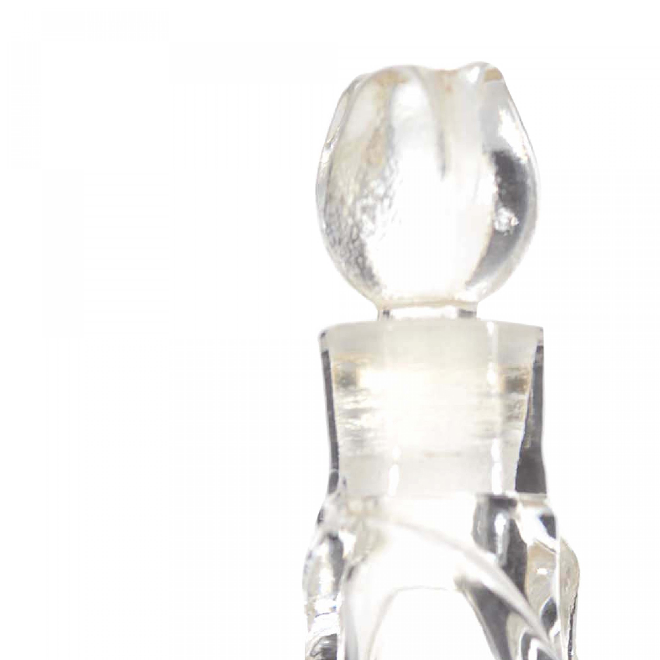French Art Deco small curved clear glass perfume bottle with a tulip shaped stopper and the name HAVILAND embossed on bottom