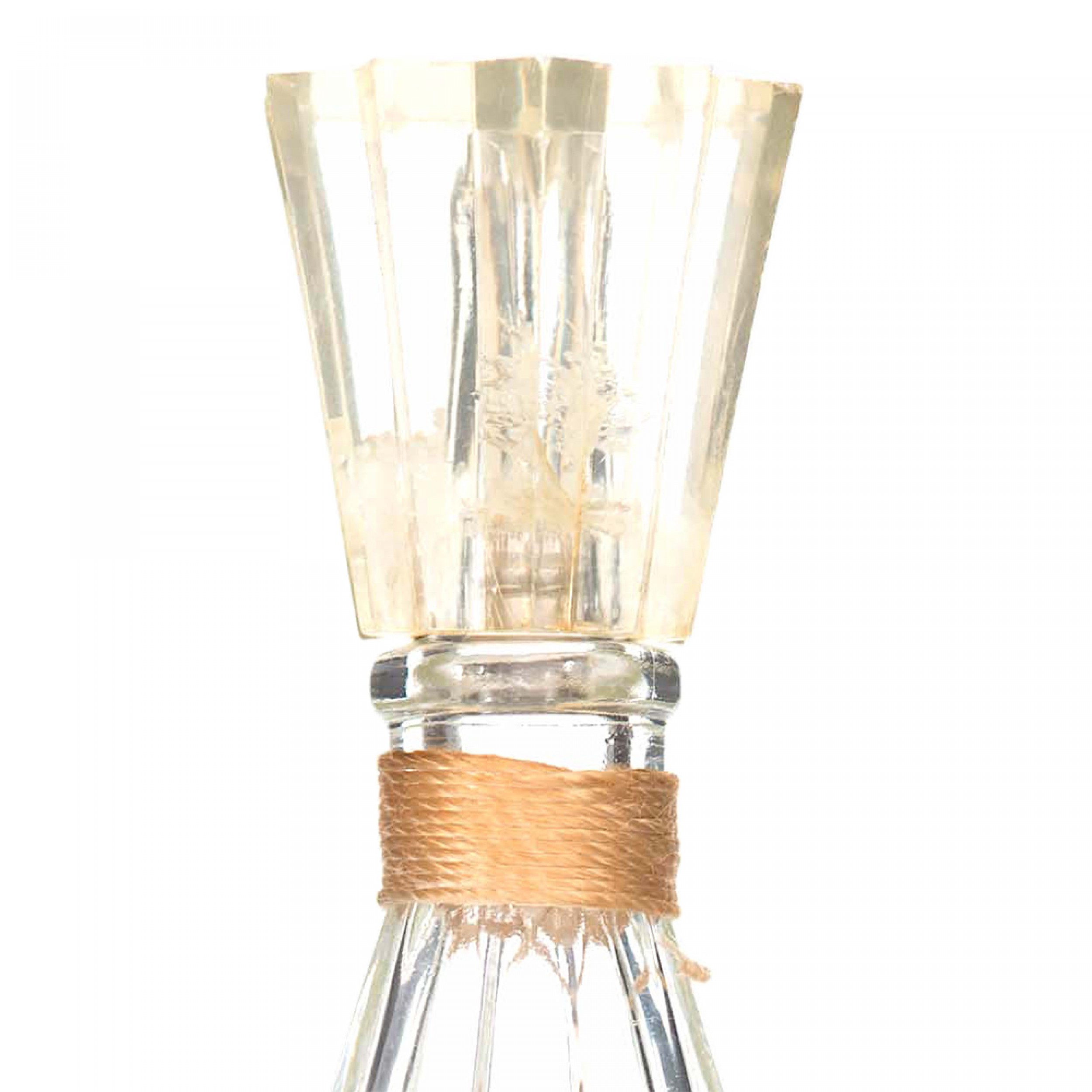 French Art Deco clear glass ribbed perfume bottle (INTOXICATION by D'ORSAY) with a star-shaped base tapering into a narrow neck and a matching stopper..