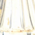 French Art Deco small clear glass ribbed perfume bottle (INTOXICATION by D'ORSAY) with a star-shaped base tapering into a narrow neck and a matching stopper..