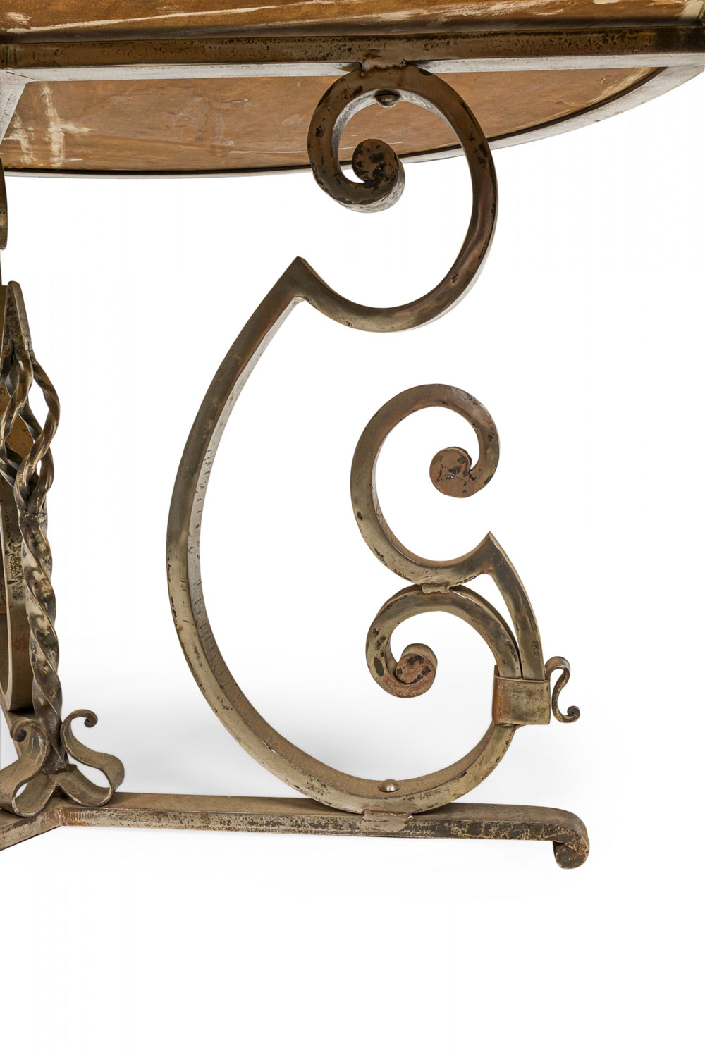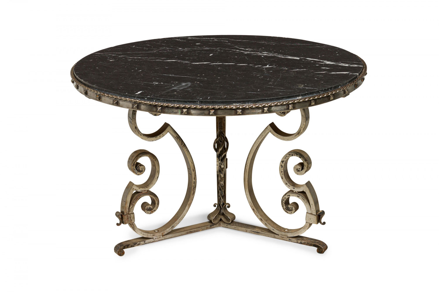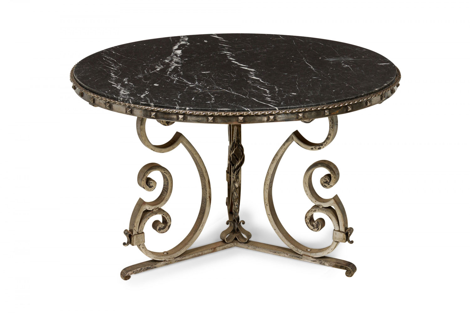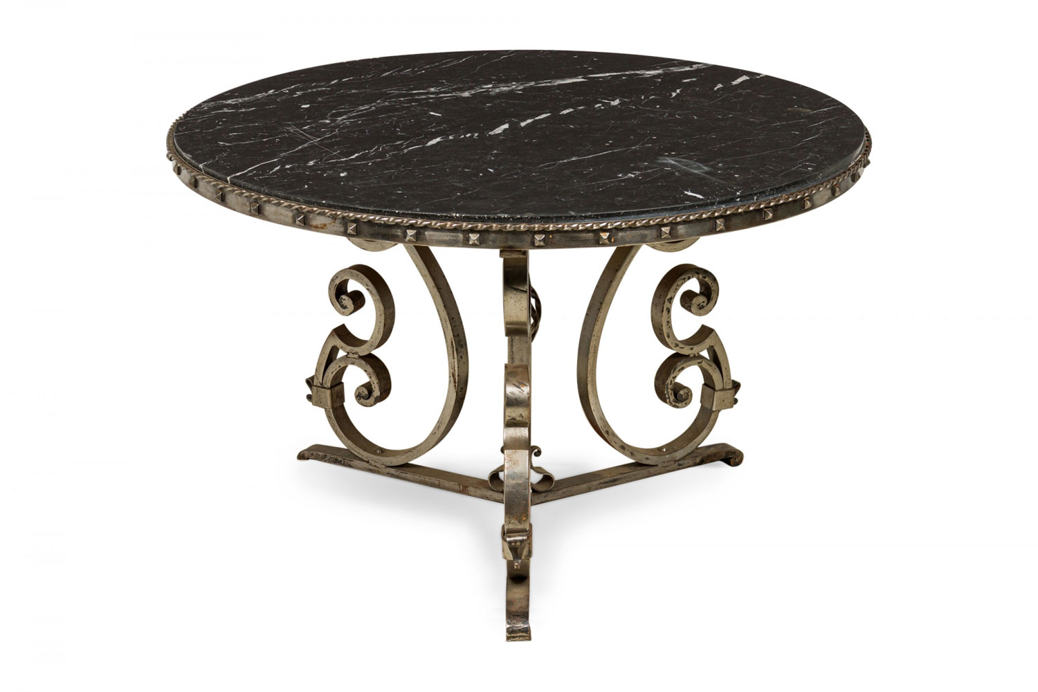 French Art Deco Iron and Black Marble Circular Scoll Form Center Table (manner of Raymond Subes)