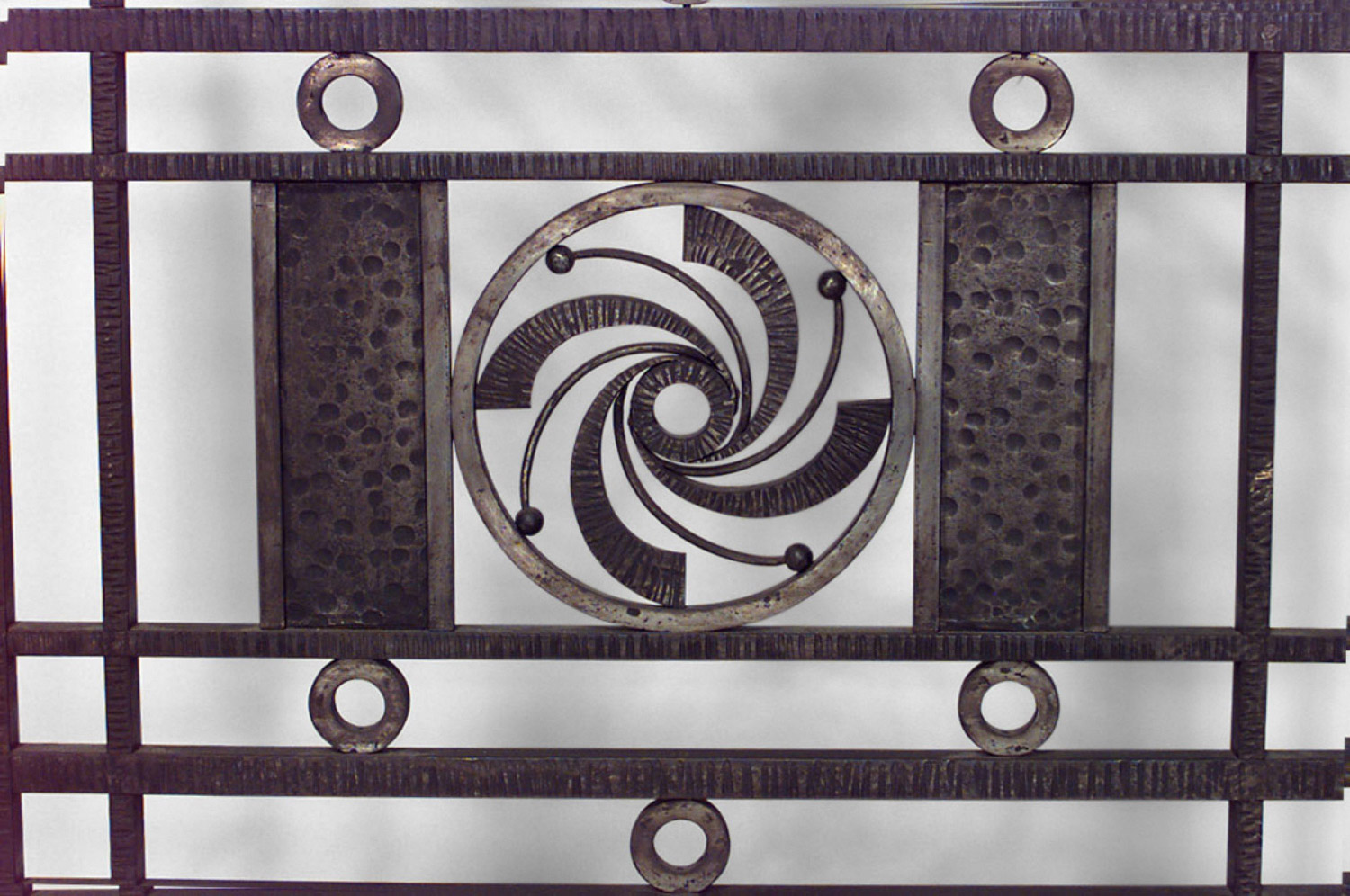 French Art Deco wrought iron filigree circle design 4 panel gate (attributed to EDGAR BRANDT)..