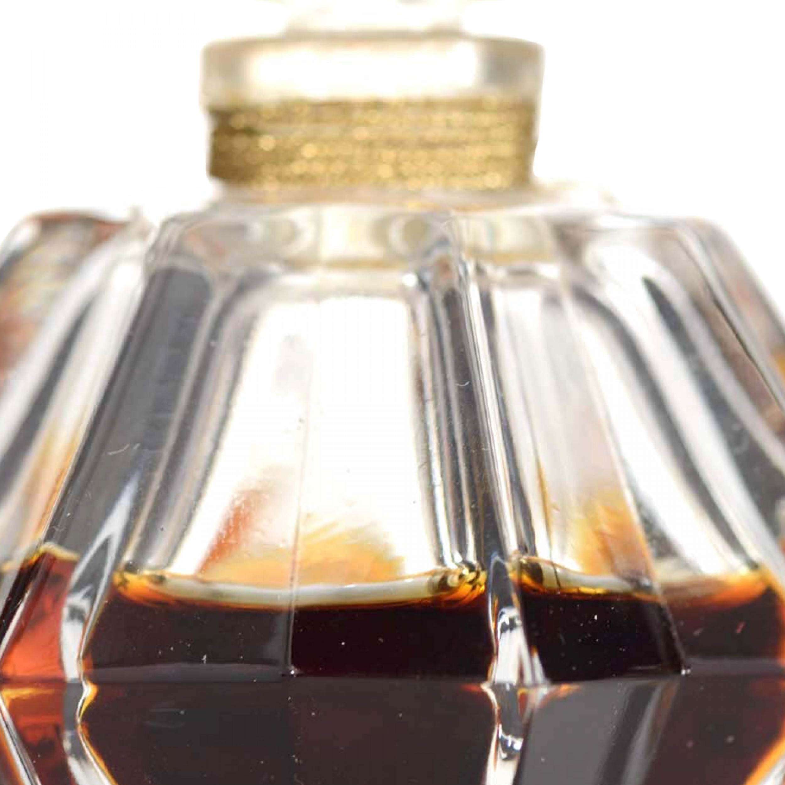French Art Deco diamond-shaped clear glass perfume bottle (FATH THE FATH by JACQUES FATH) with a matching stopper