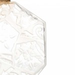 French Art Deco octagonal glass perfume bottle with decorative etchings of flowers and a ball-shaped stopper. JC Brosseau for BACCARAT (Signed on bottom: across top "JC Brosseau" across top, across bottom "Made In France")