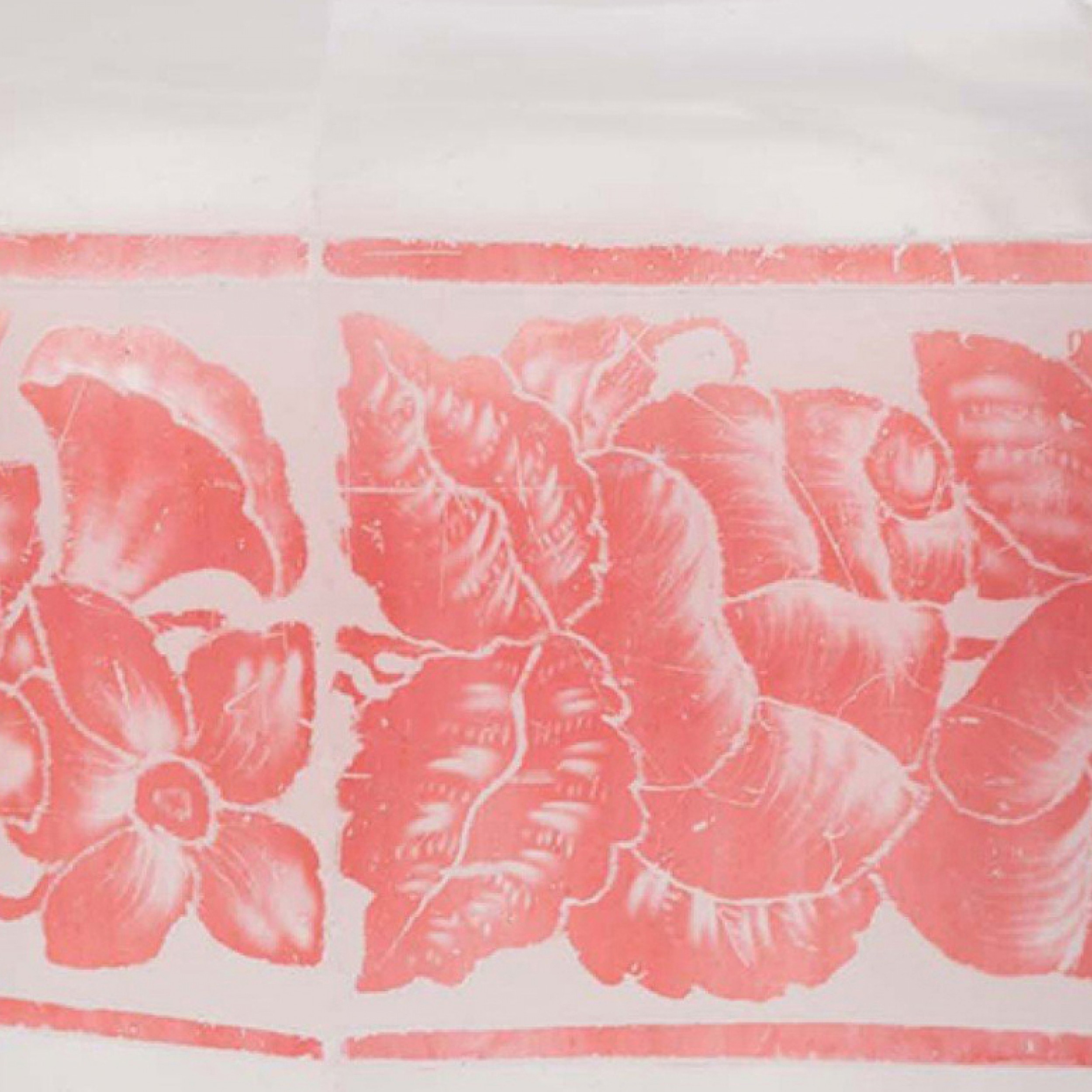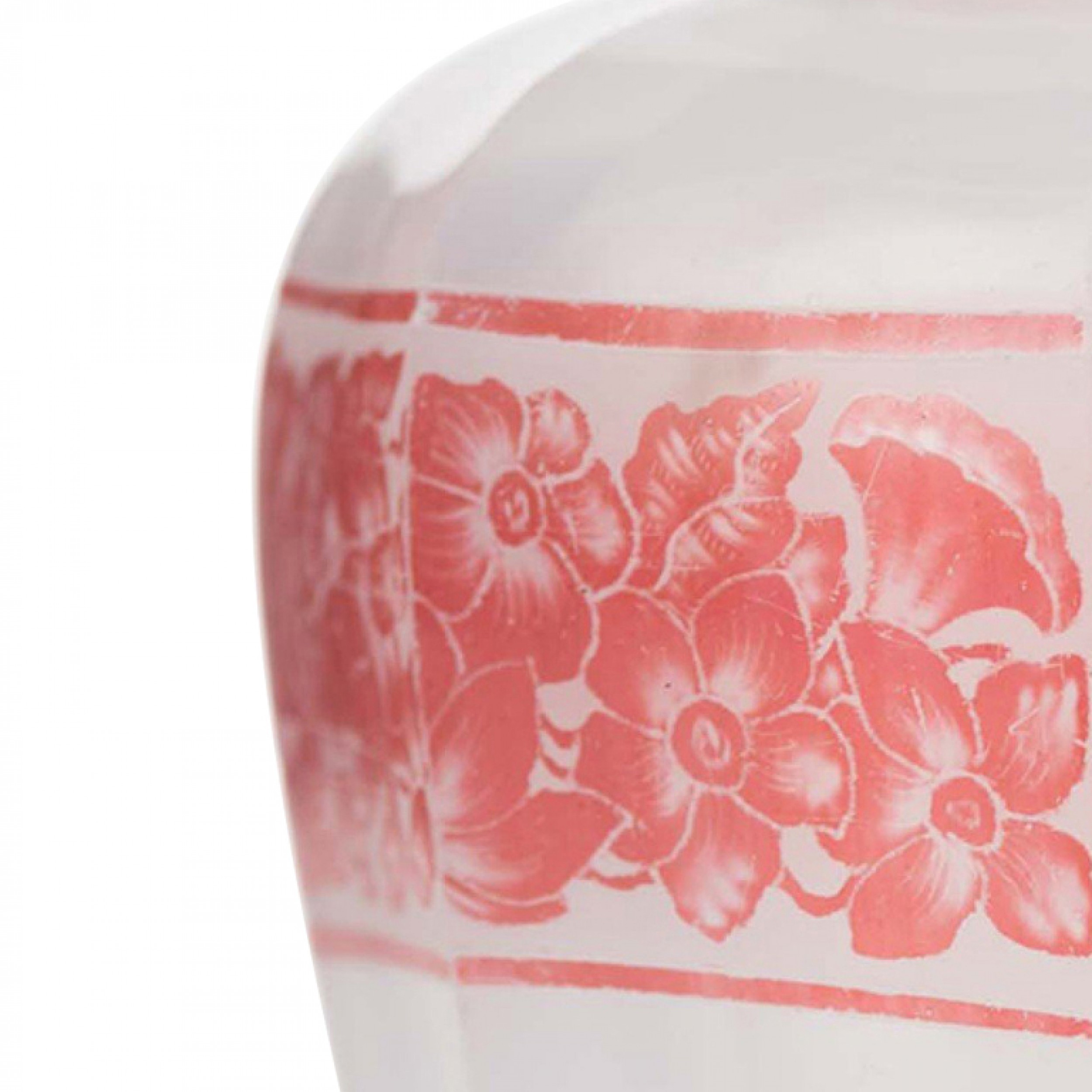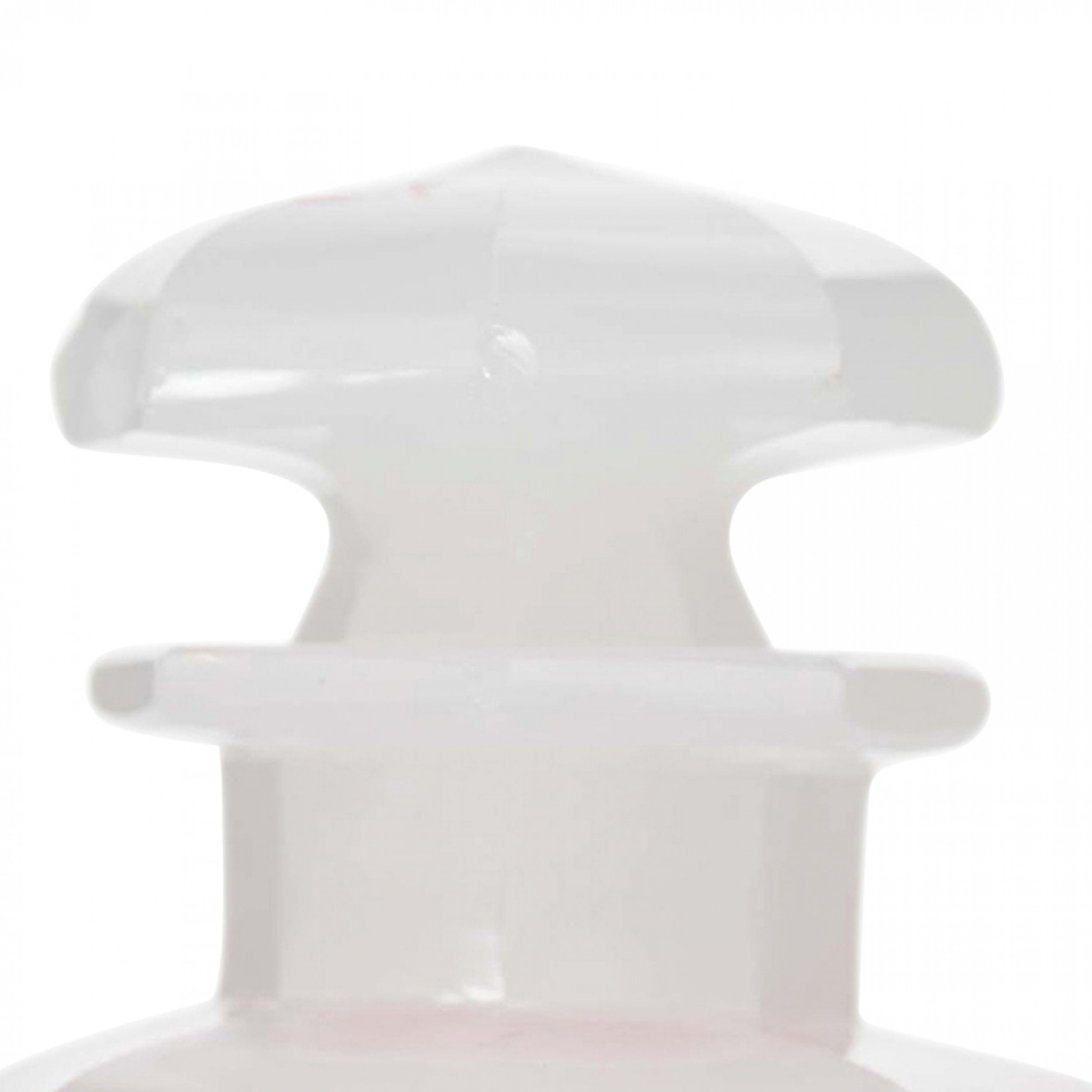 French Art Deco octagonal frosted glass perfume bottle with painted pink floral band around the middle & matching octagonal faceted frosted glass stopper "Bouquet de faunes" LALIQUE for Guerlain.