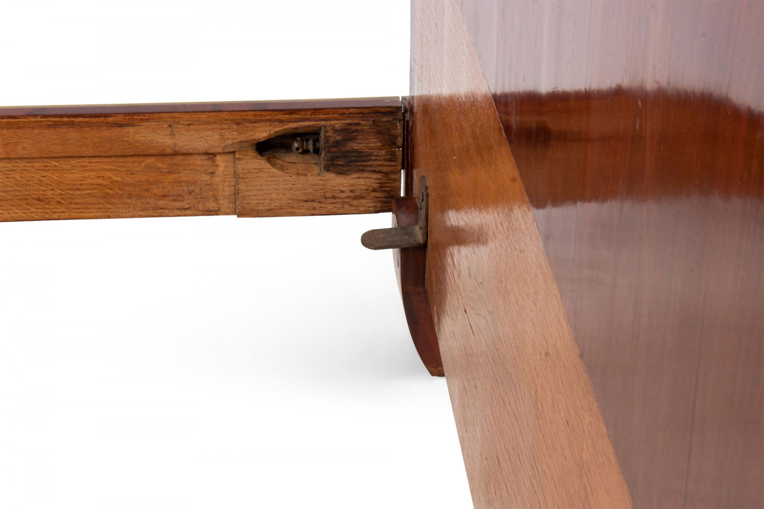Style: Art Deco Materials & Techniques: Brass, mahogany Category: Bedroom, Beds Condition: Does not fit a modern mattress. Width dimensions are taken from outside rails. Some slight damage and buckling to veneer.