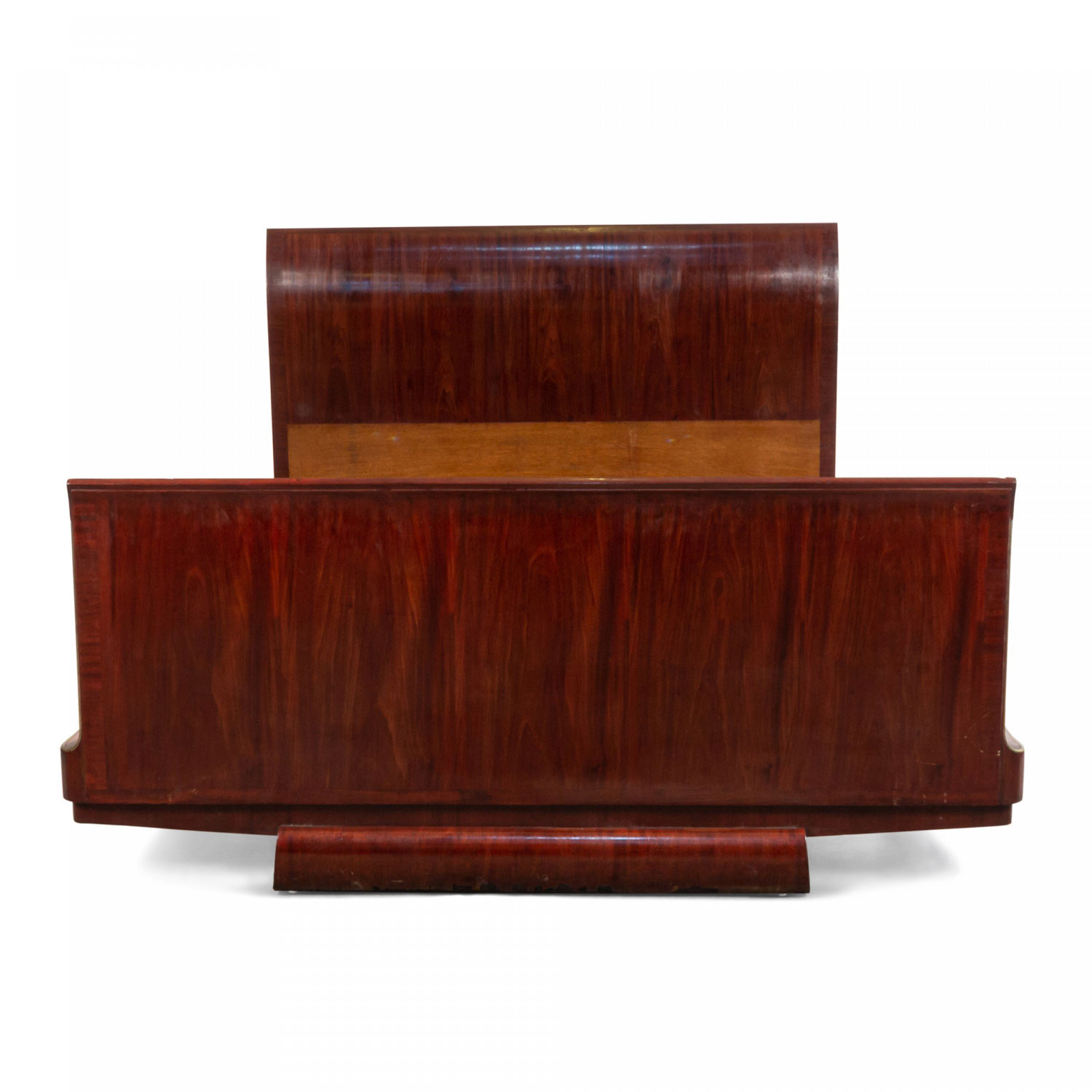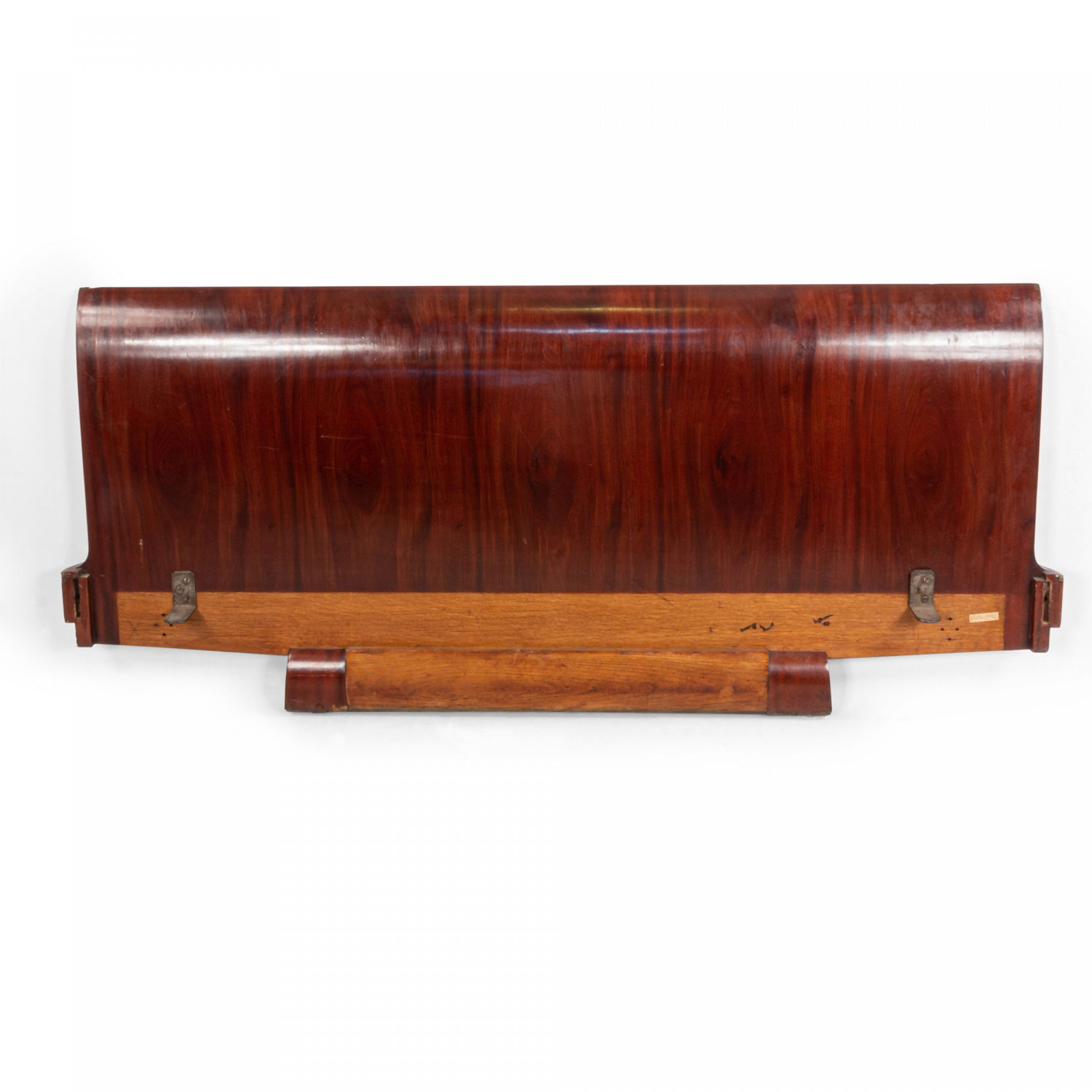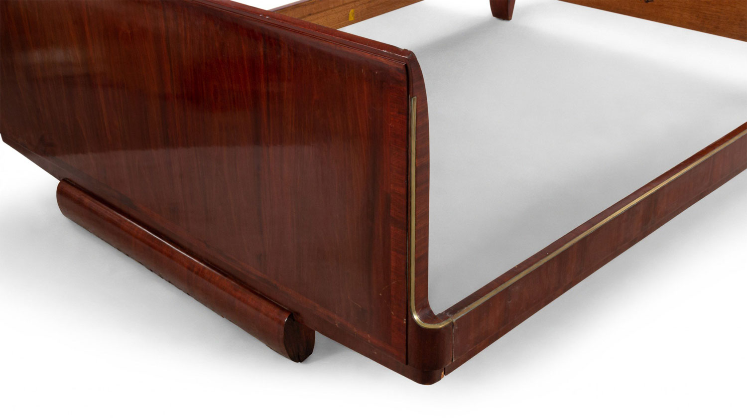 French Art Deco mahogany bed with a brass edge (includes: headboard, footboard, rails).