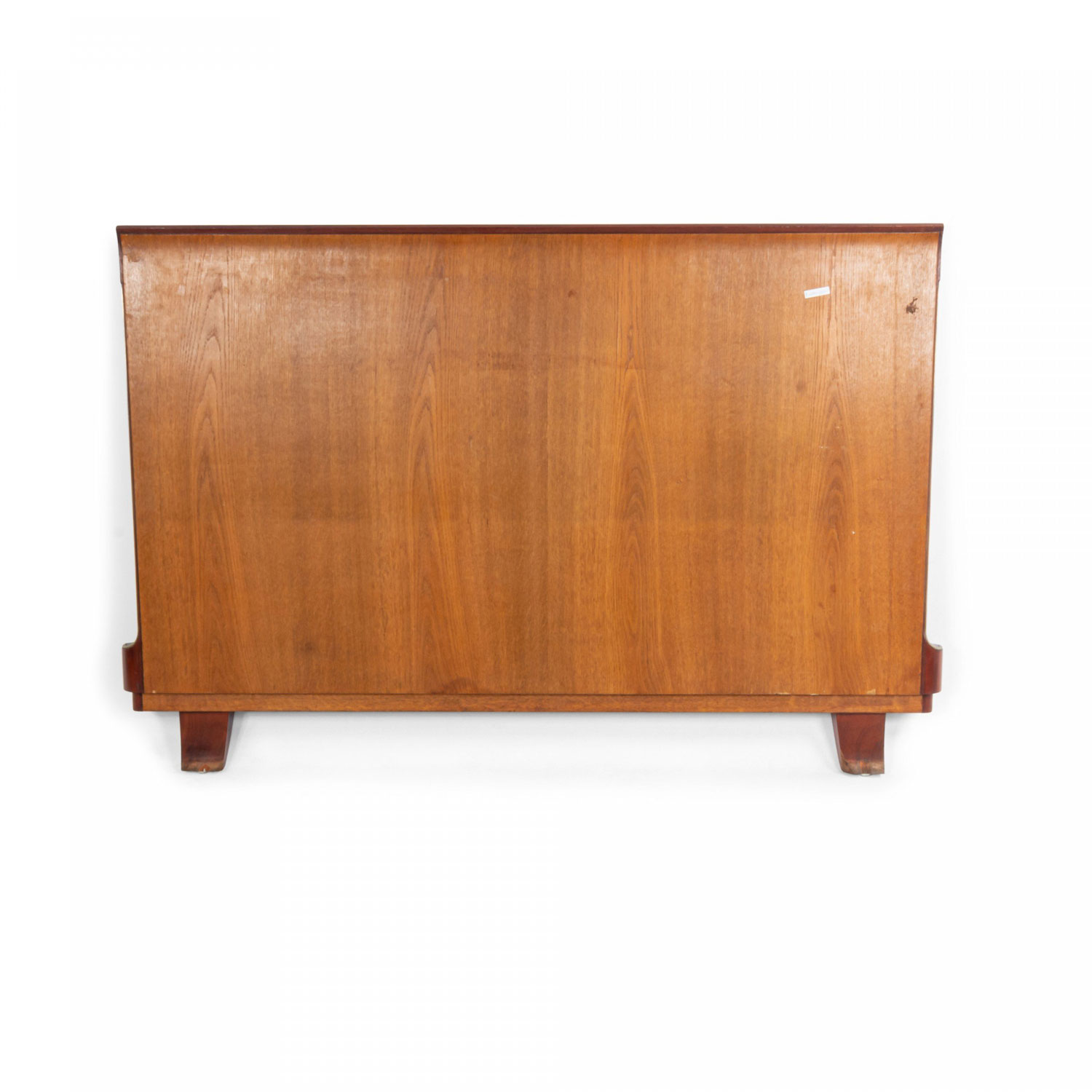French Art Deco mahogany bed with a brass edge (includes: headboard, footboard, rails)