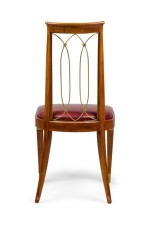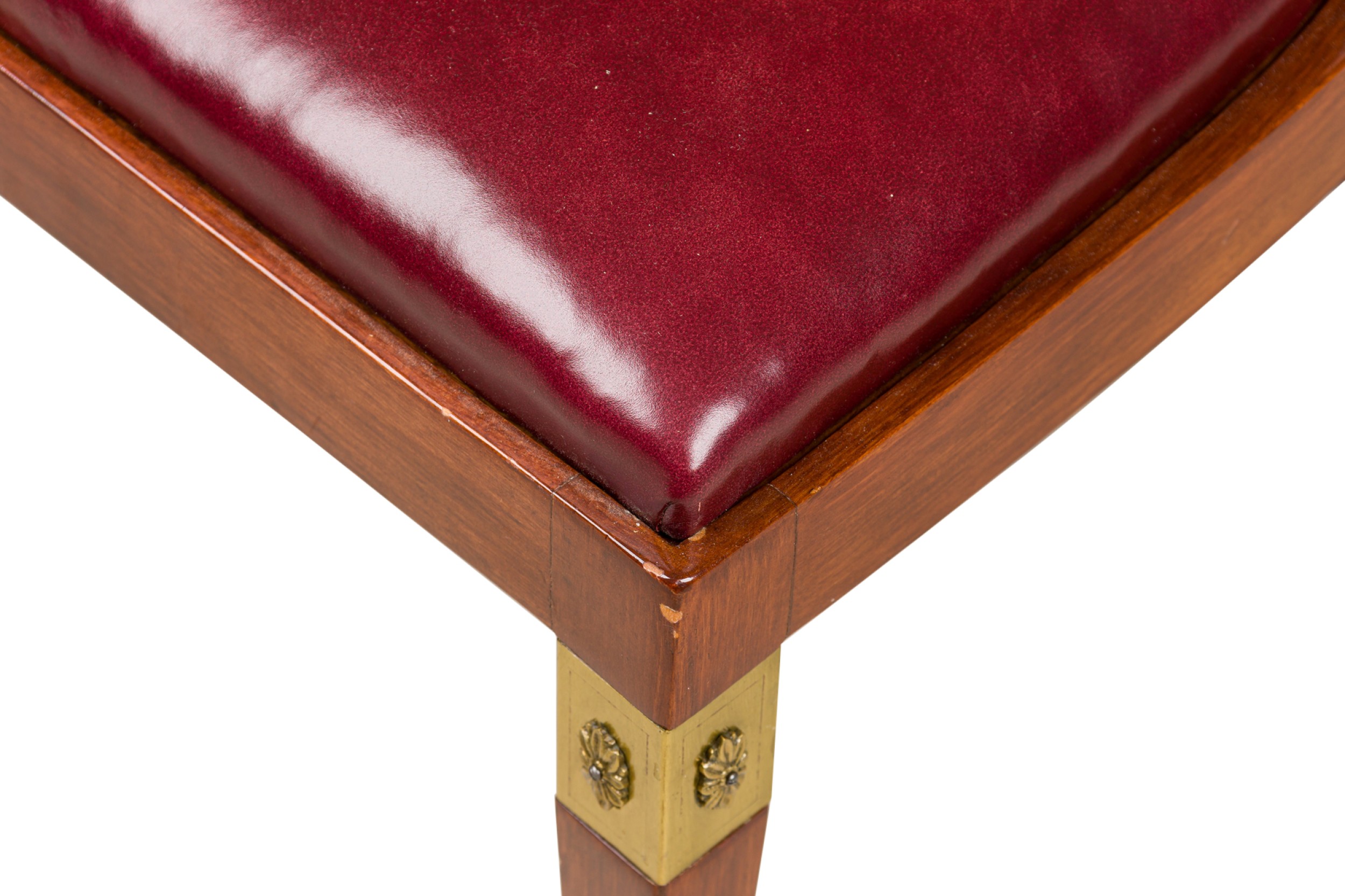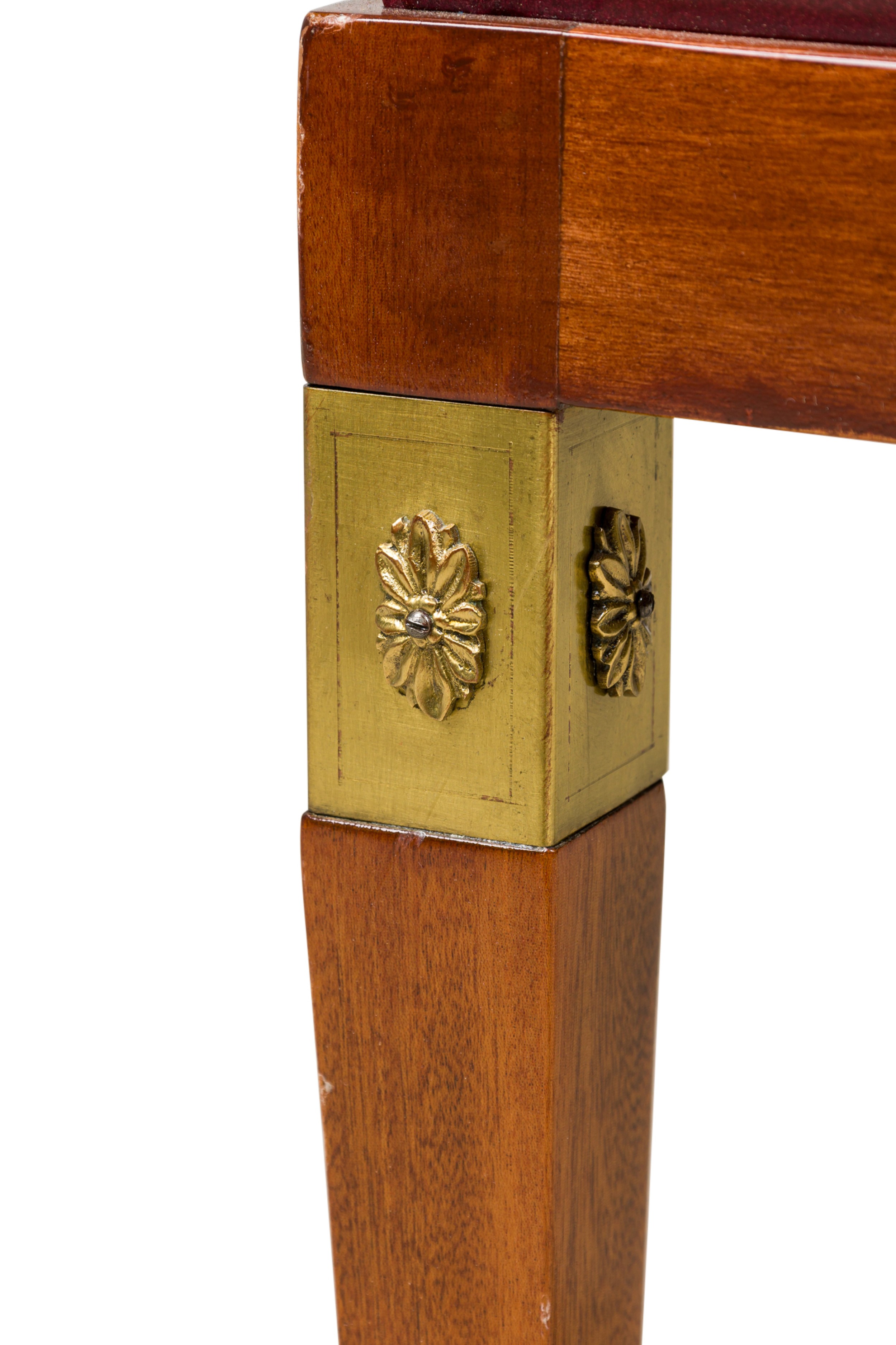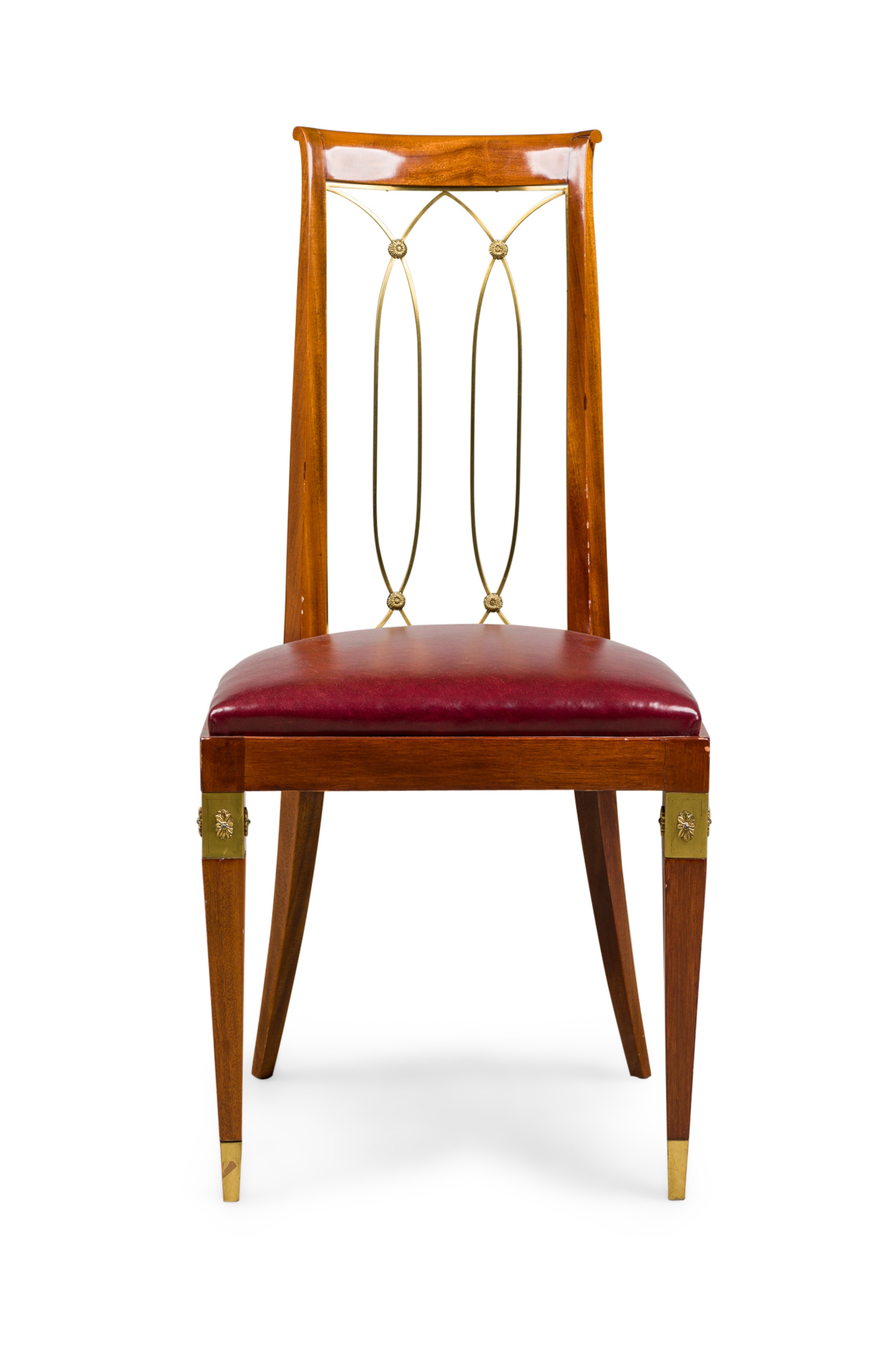 French Art-Deco mahogany brass open back side chair with a red leather seat (matching armchair: 063799A).