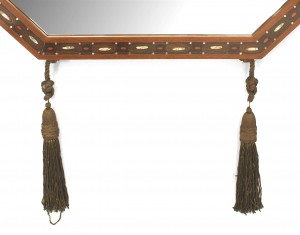 Style: Art Deco Materials & Techniques: Inlaid, mahogany, wood Category: Mirrors Condition: Delicate, fringe has been re-attached.