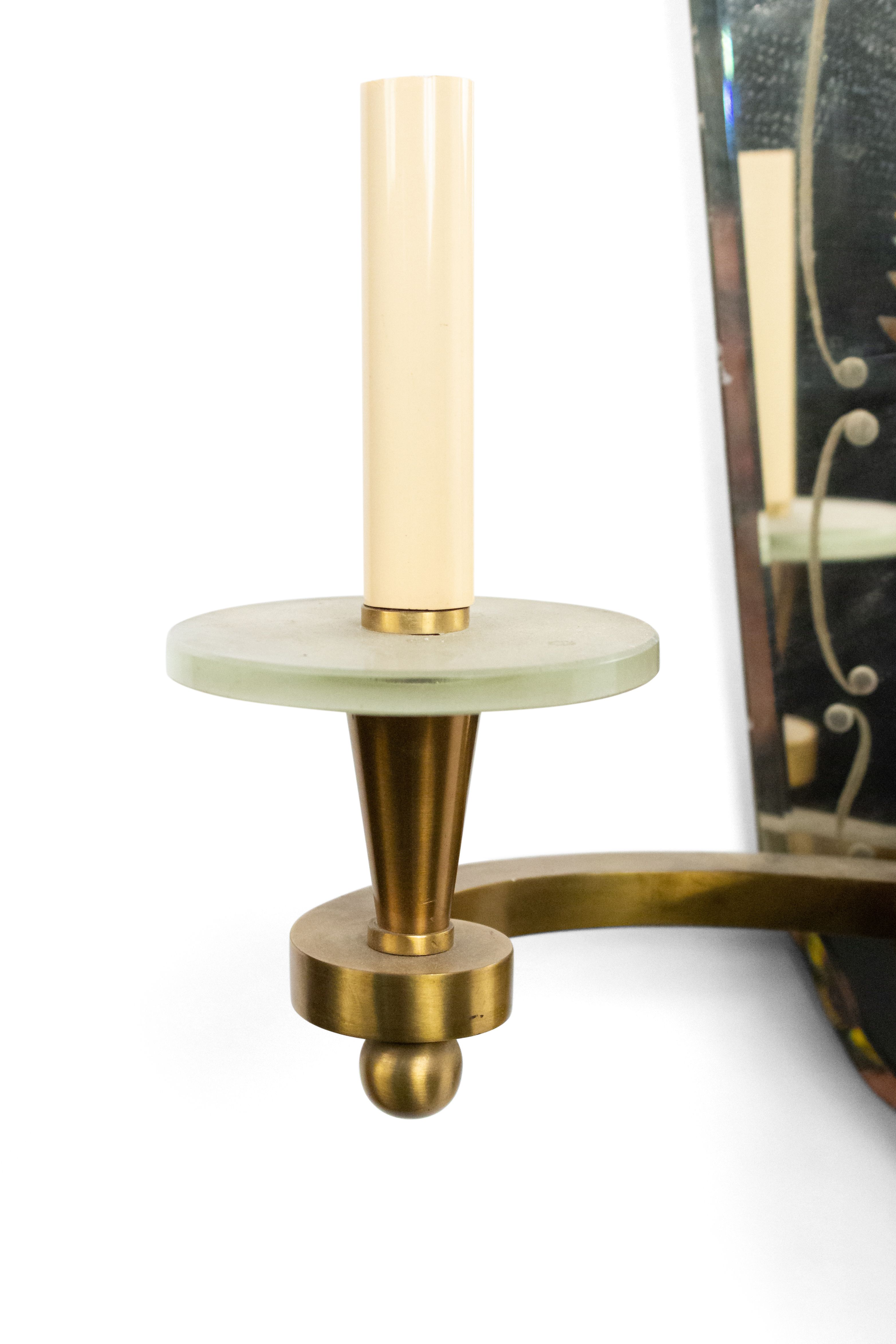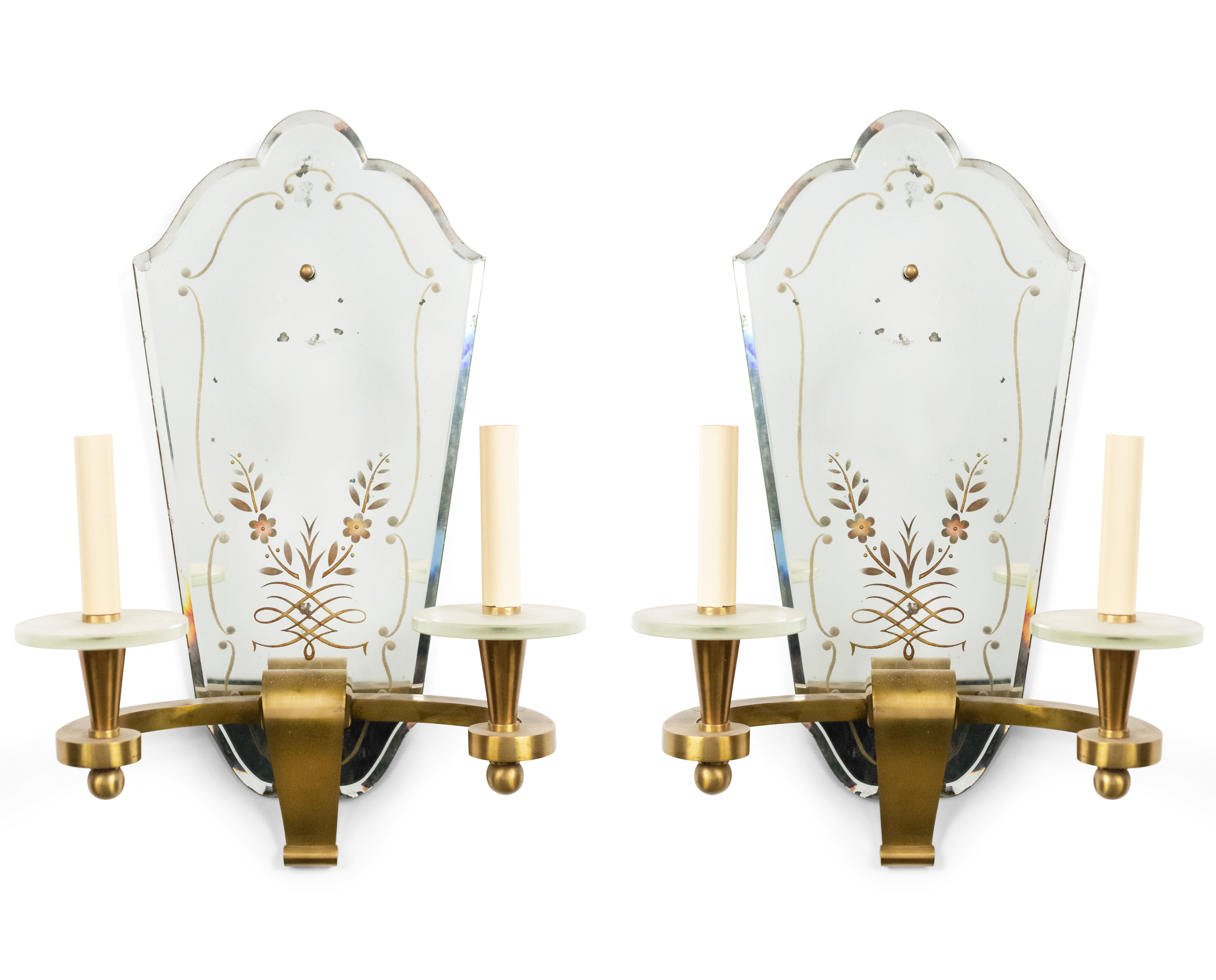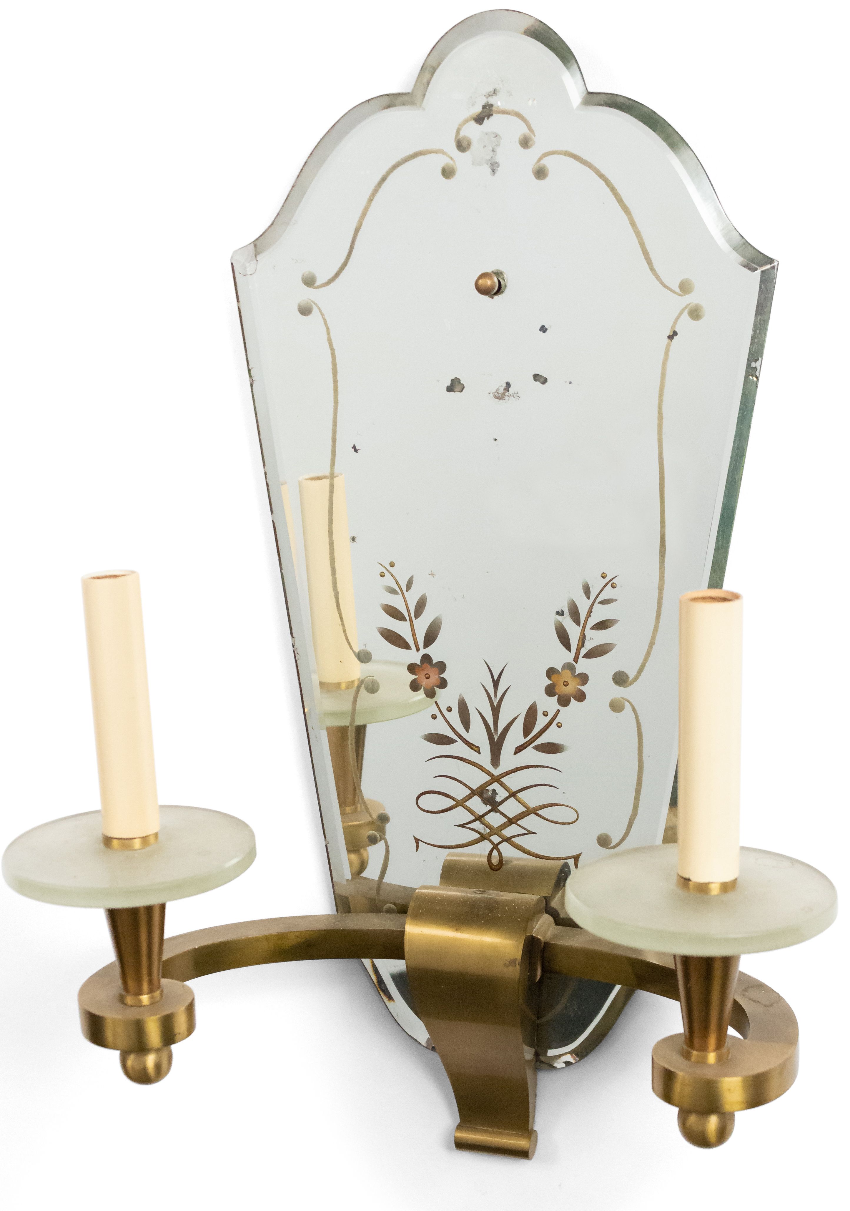 French Art Deco Ormolu and Etched Mirror Wall Sconces