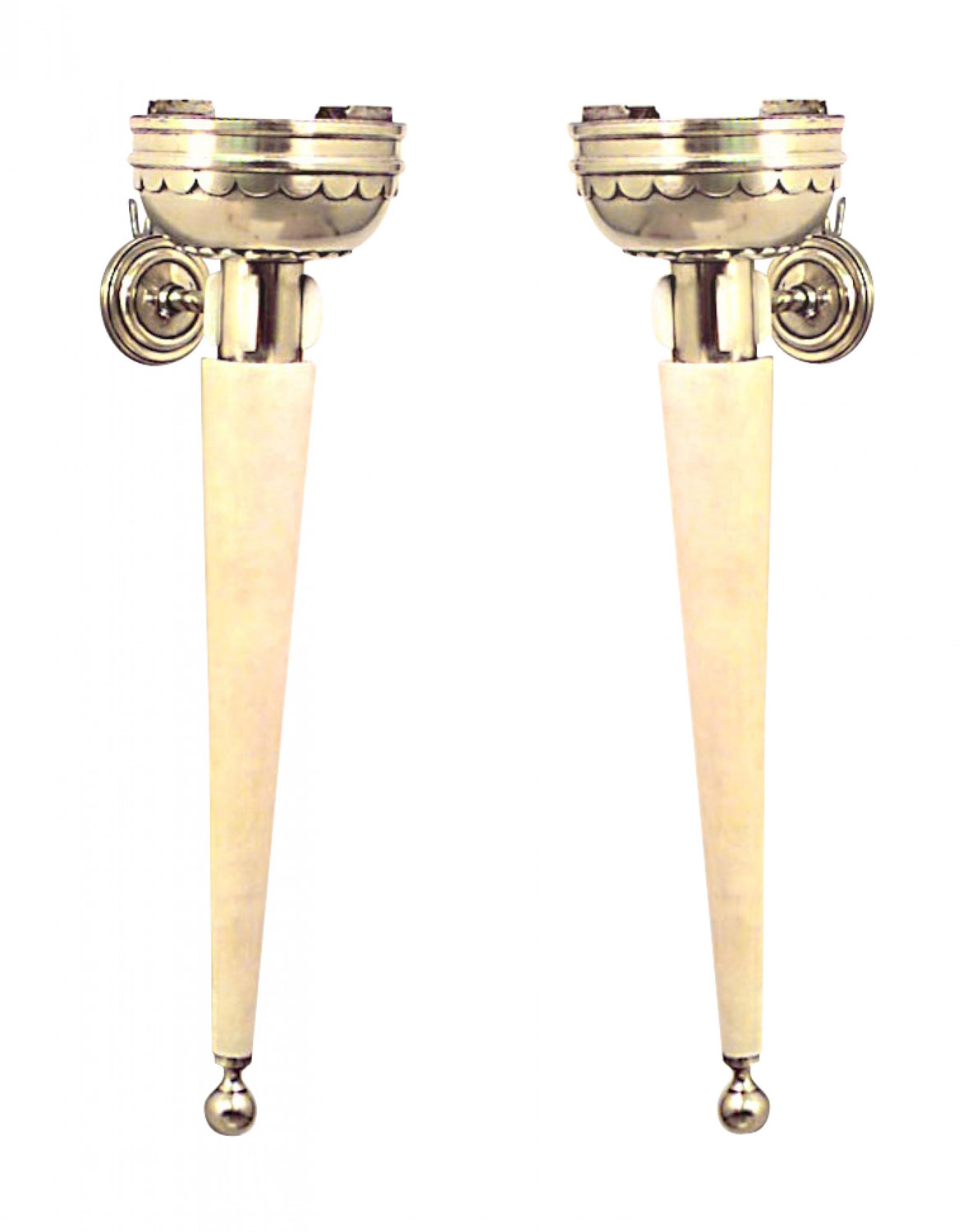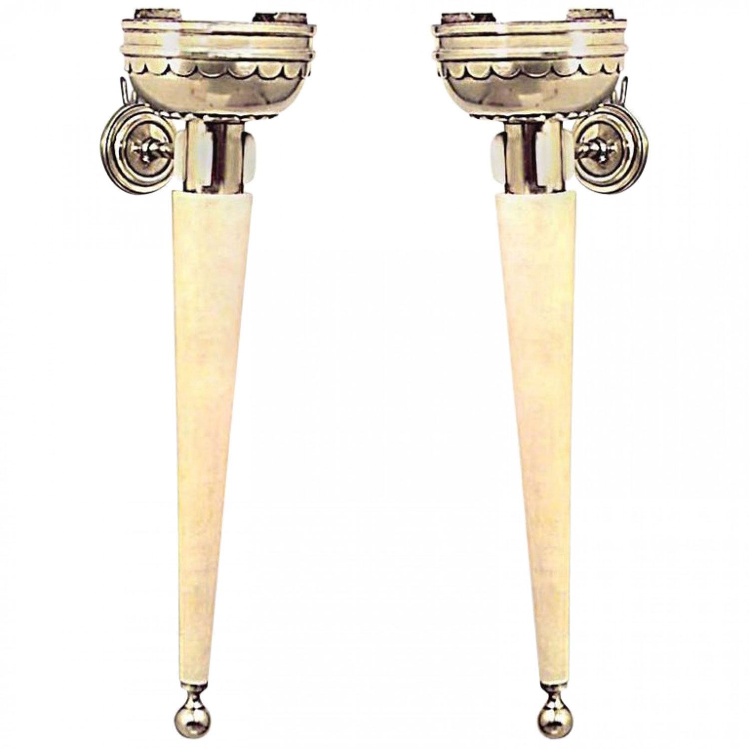 Pair of French Art Deco Parchment and Brass Torch Wall Sconces