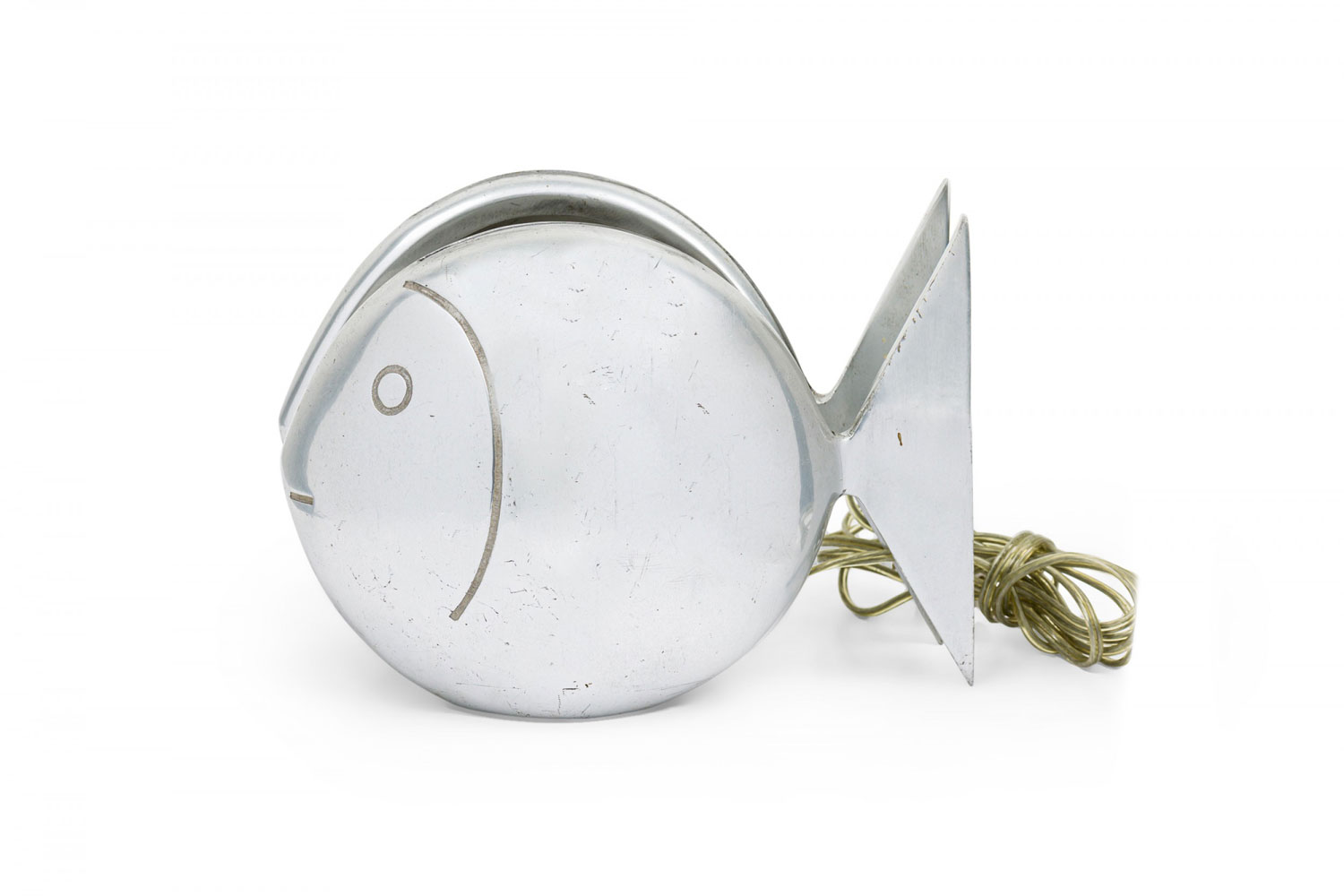 French Art Deco style double-sided pewter fish shaped table lamp