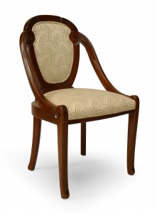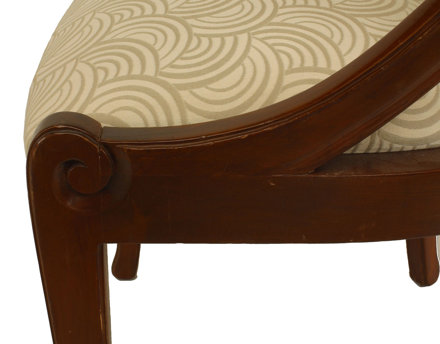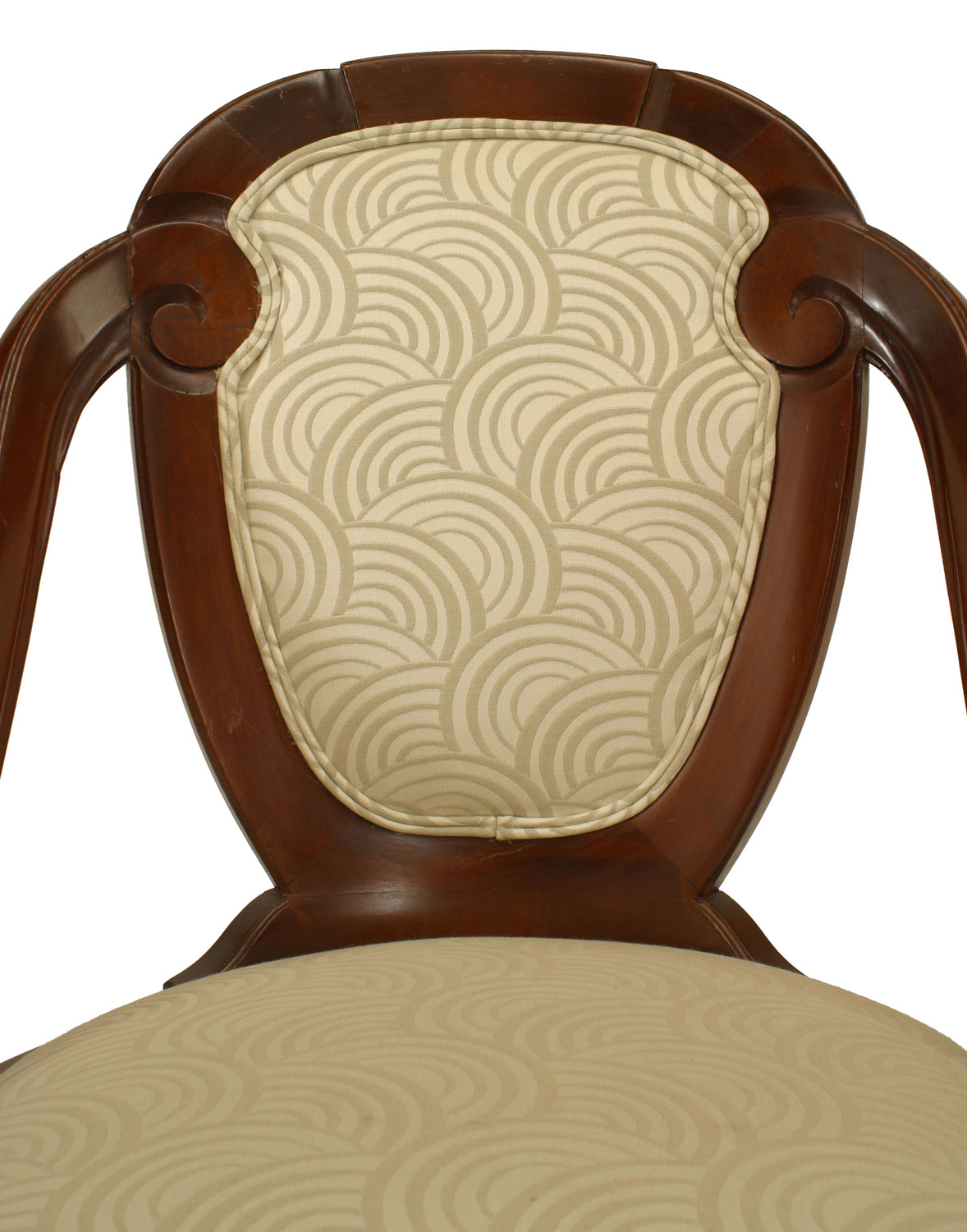 24 French Art Deco stained mahogany carved scroll back side chairs with upholstered seat and back (manner of Sue et Mare) PRICED EACH