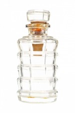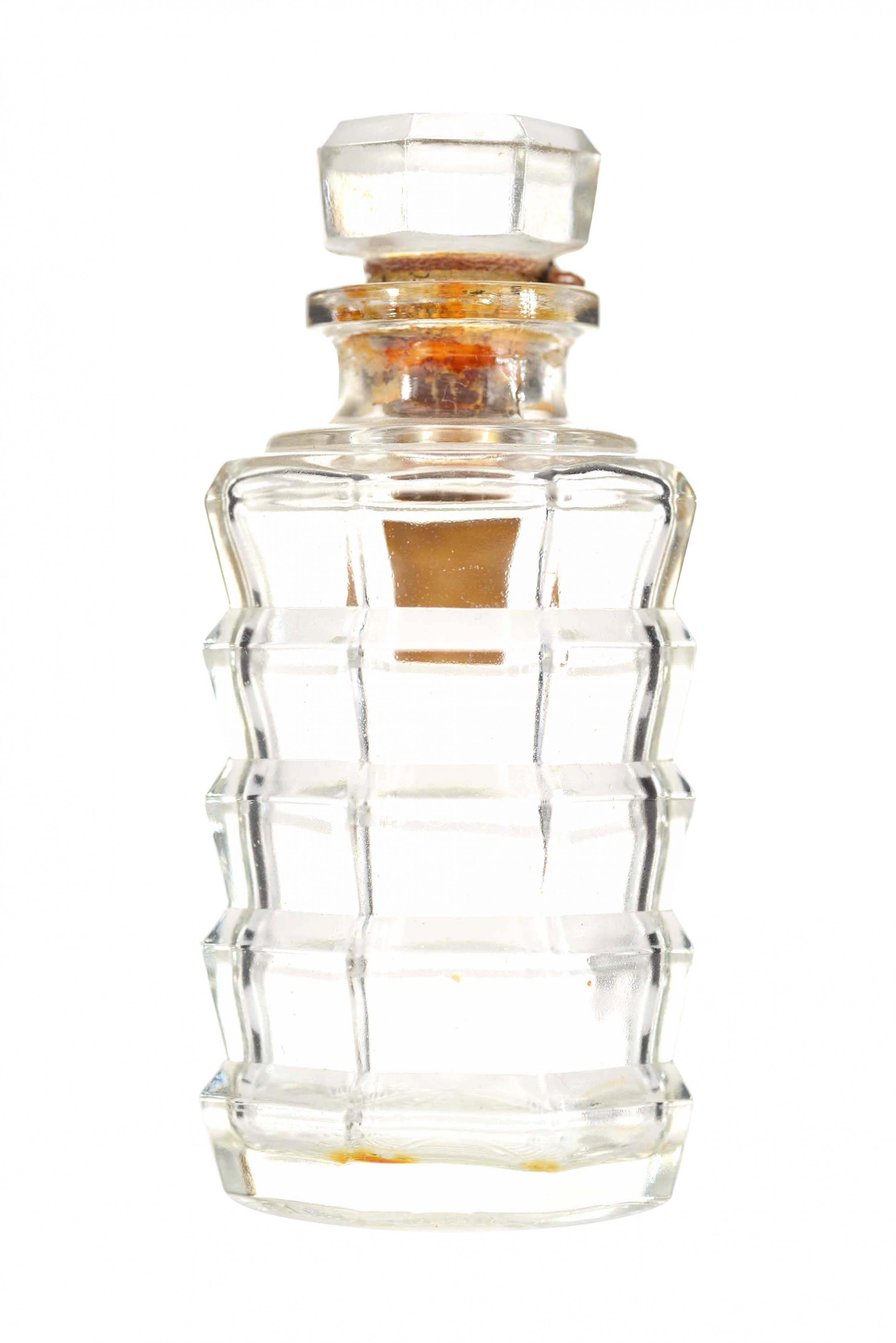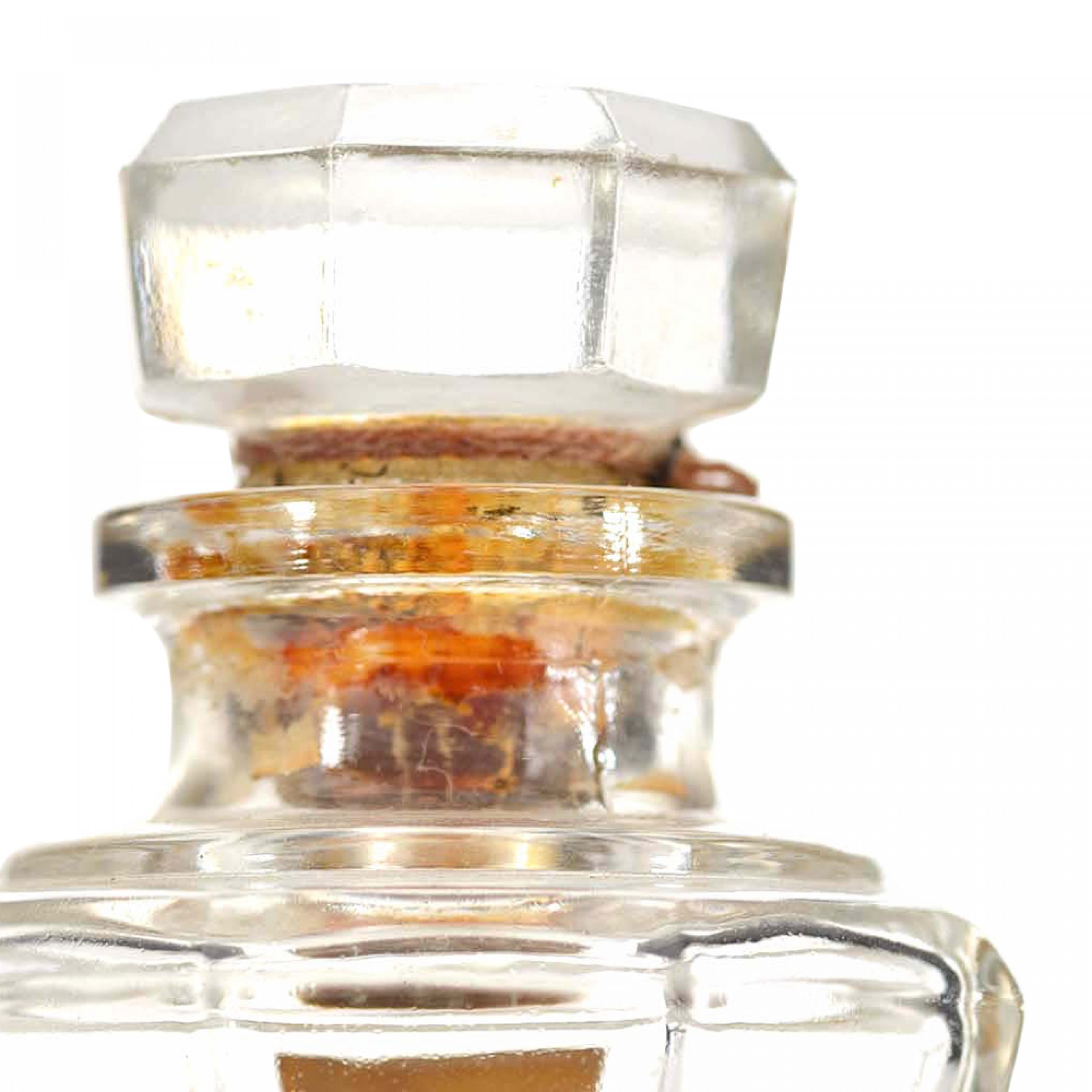 French Art Deco octagonal clear glass perfume bottle (SINFUL SOUL by GABILLA) with a tired design and a matching stopper..