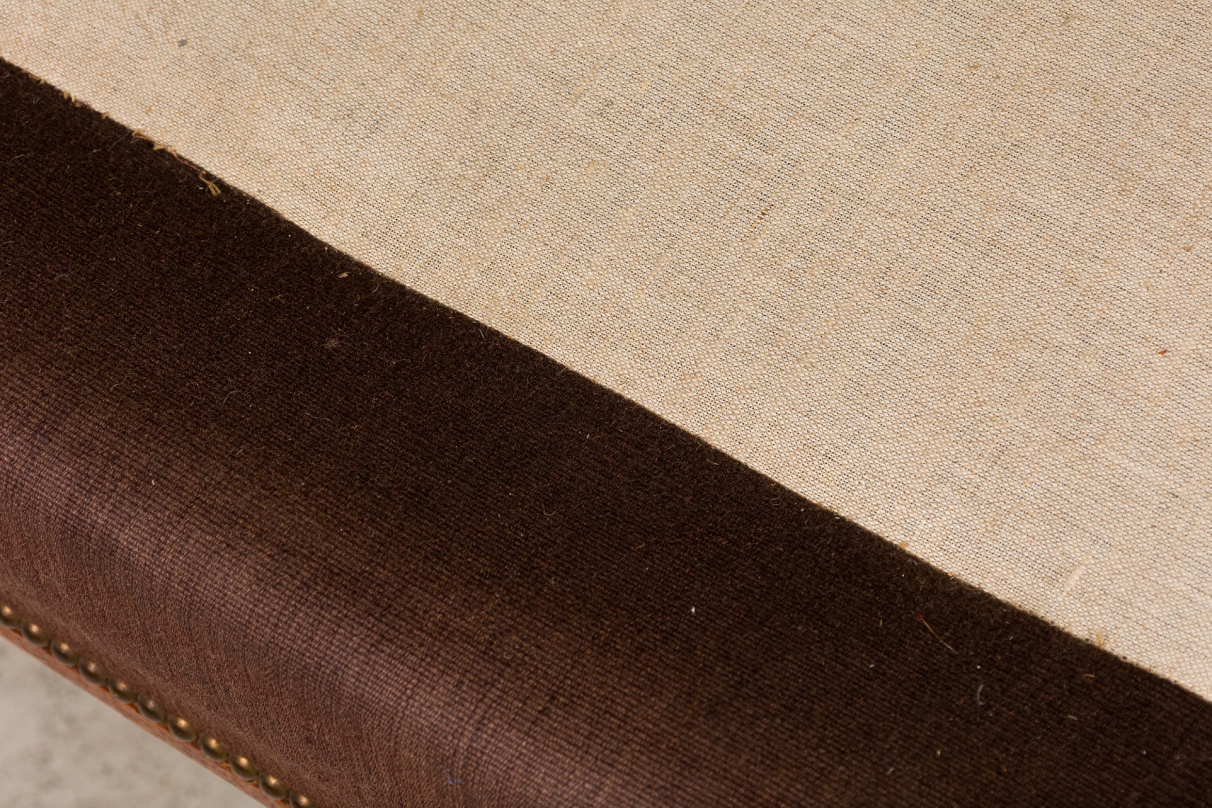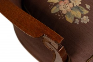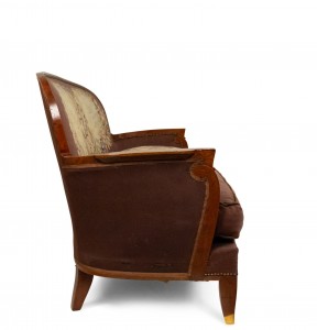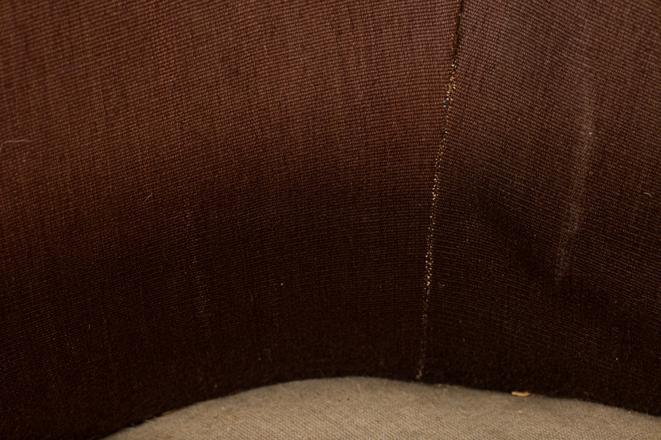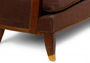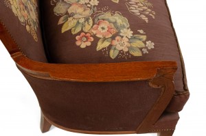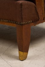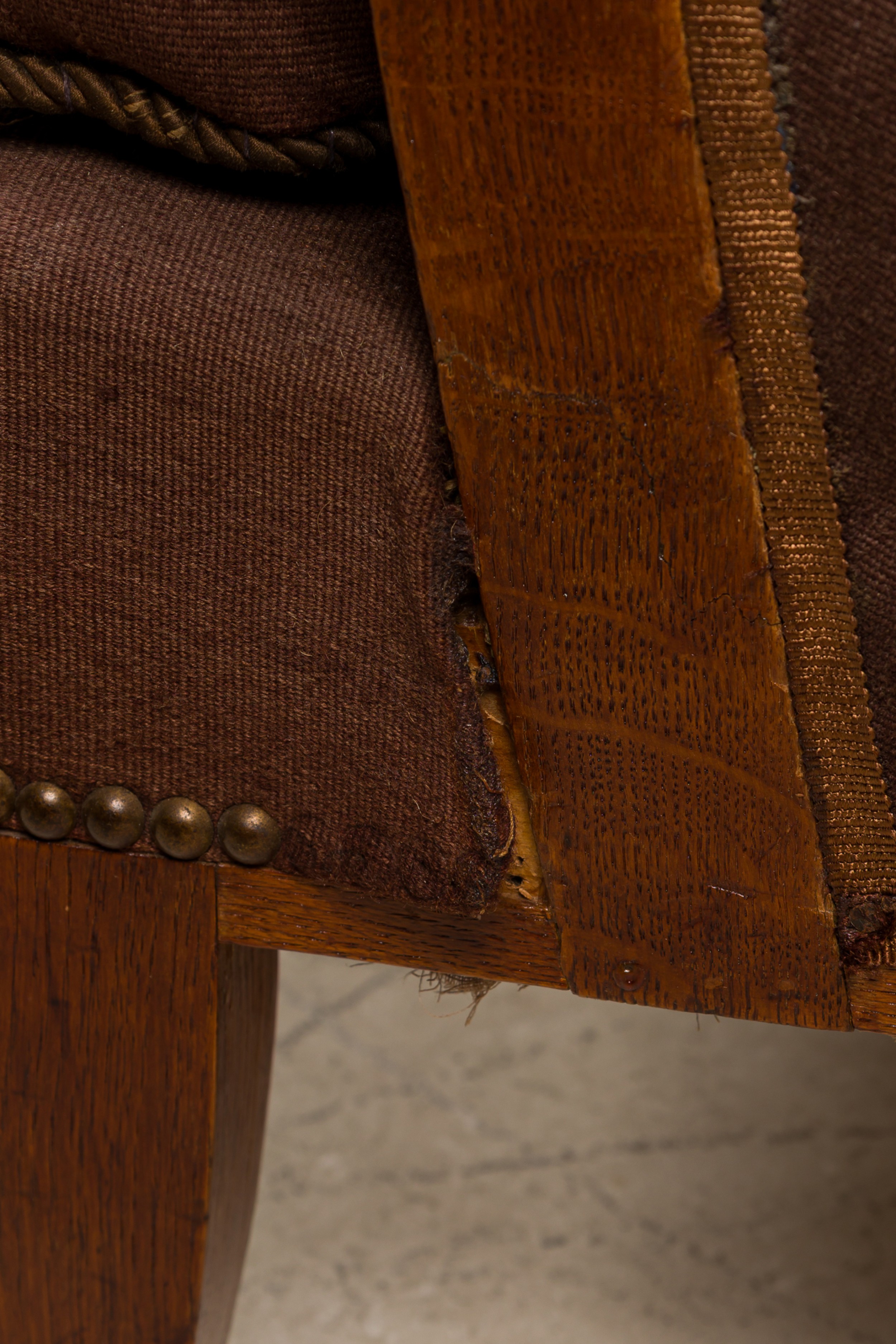 Style: Art Deco Materials & Techniques: Oak Category: Seating Condition: There is a slight tear in the seat fabric and on the sides of the piece.