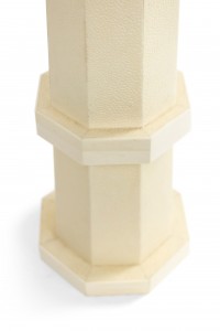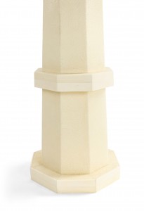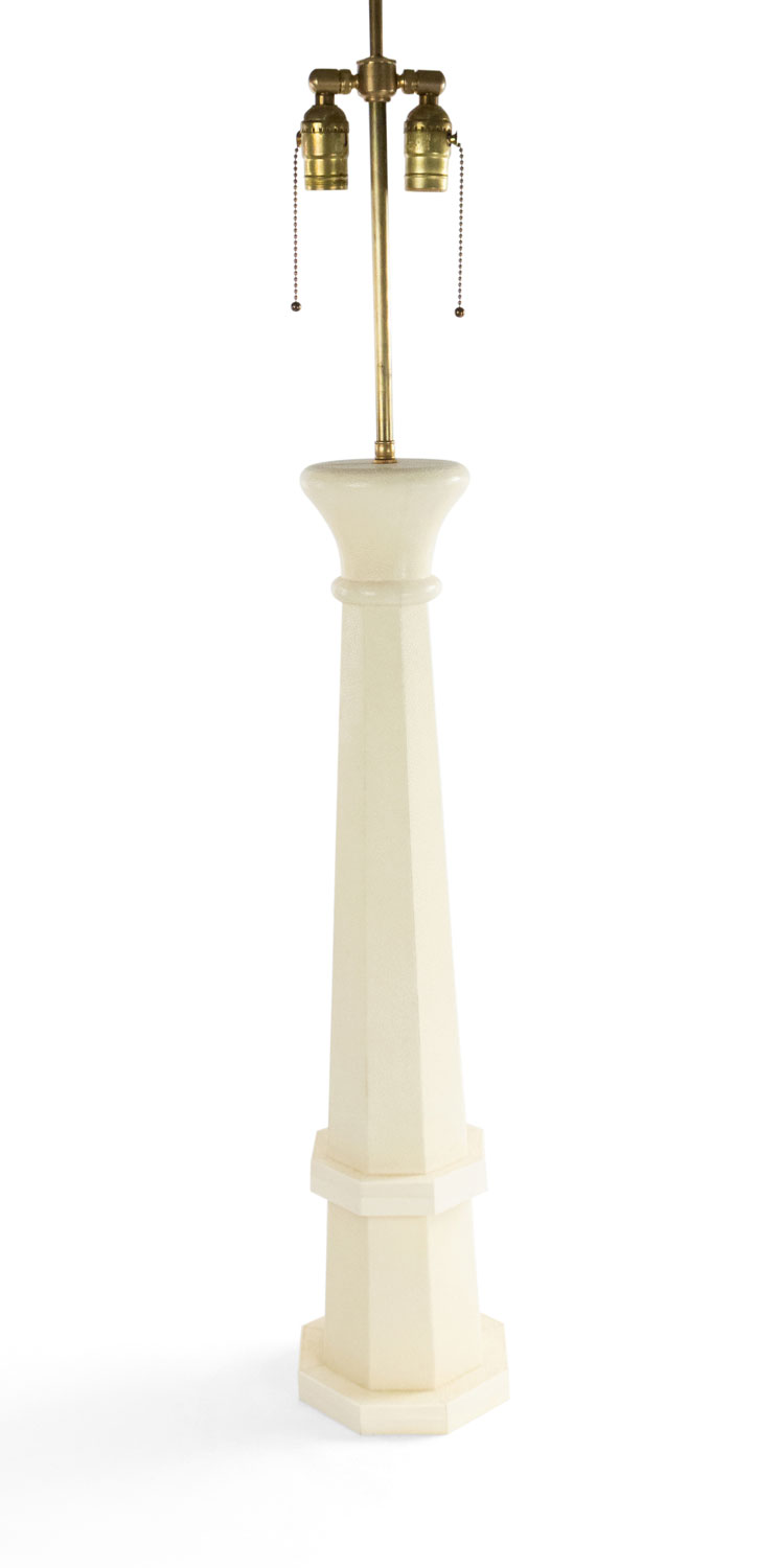 French Art Deco style white shagreen and bone inlaid trim table lamp with a tapered octagonal shape.