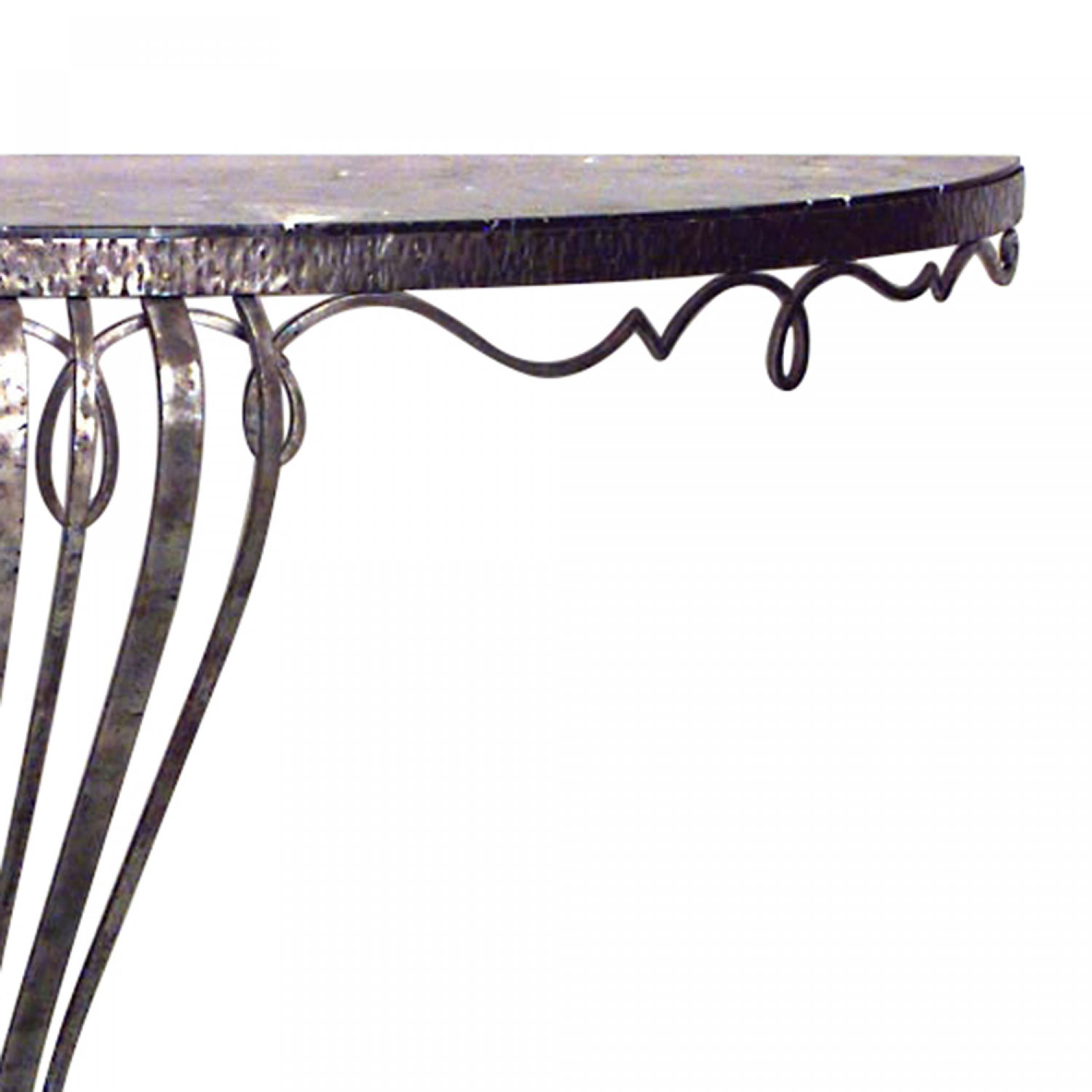 Raymond Subes French Art Deco Wrought Iron Marble Top Console Table