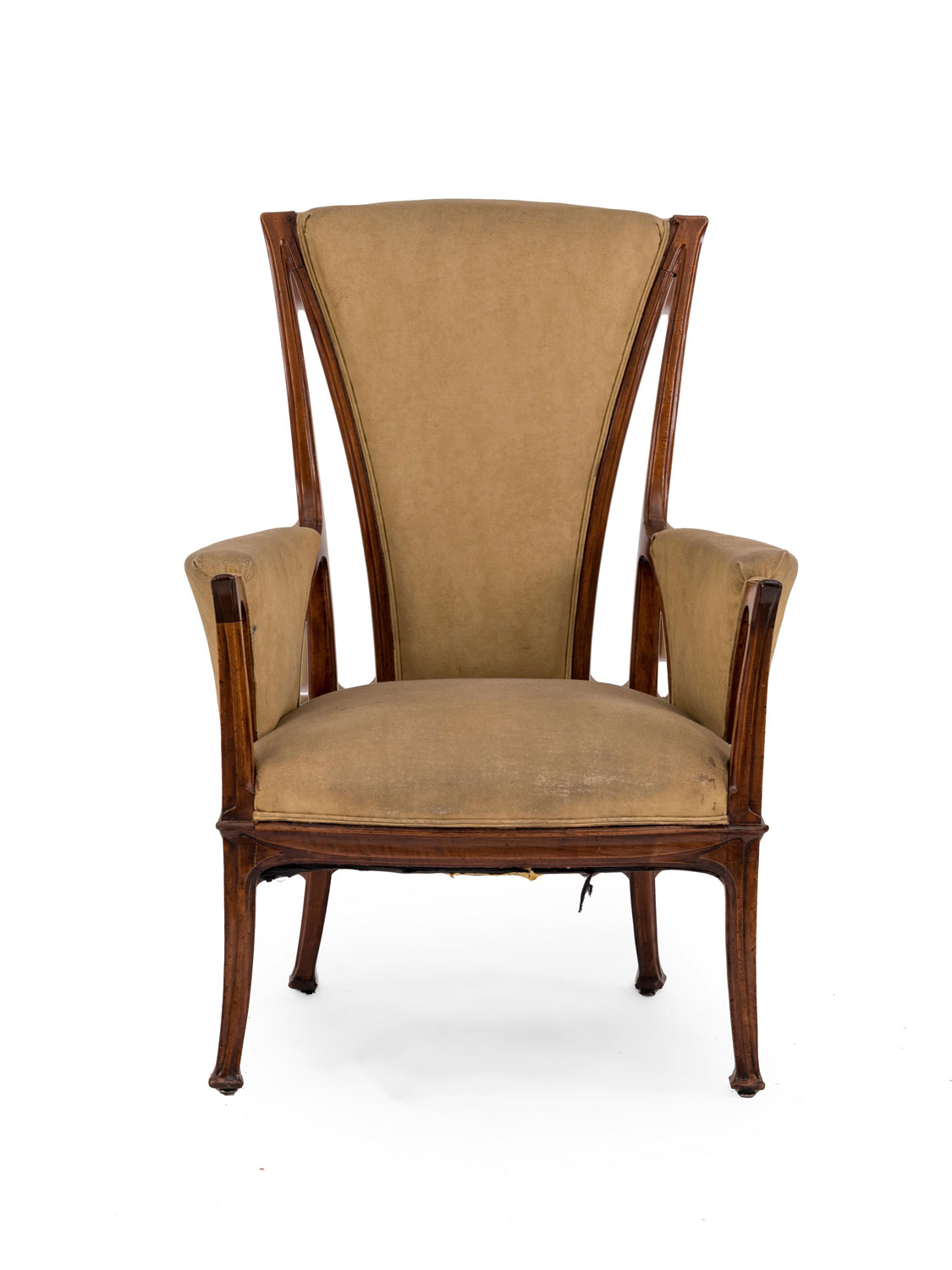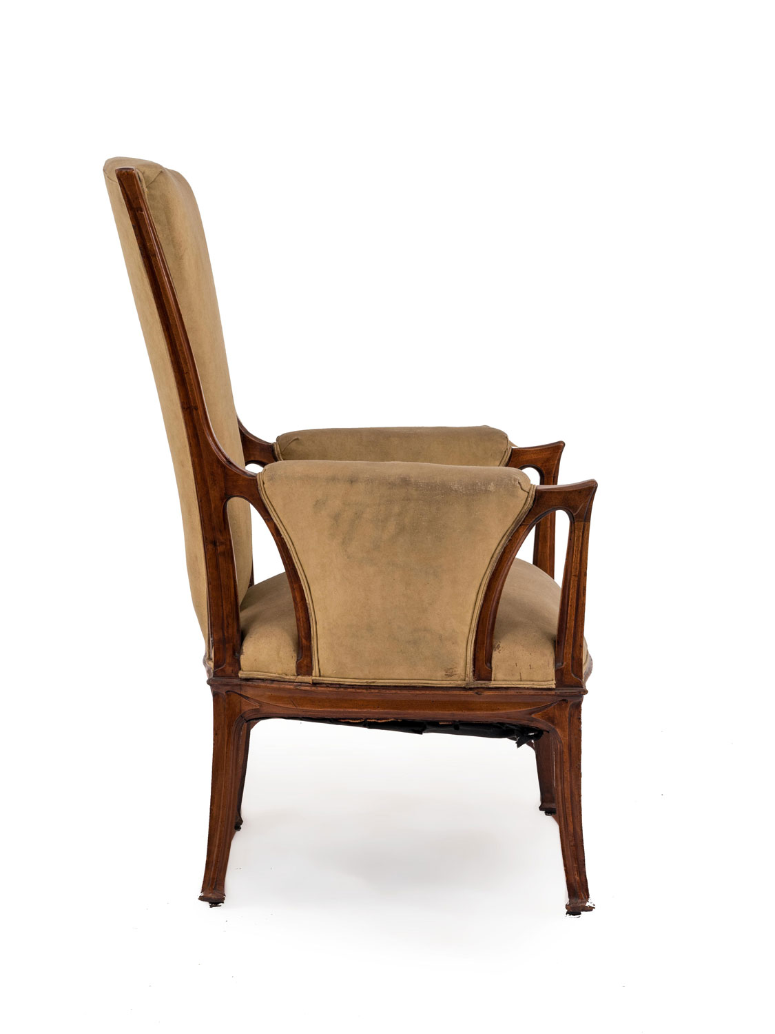 Style: Art Nouveau Materials & Techniques: Velvet, walnut Category: Seating