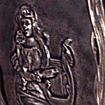 French Art Nouveau bronze and gilt trimmed vase with 4 women representing the Arts with handles (signed LE NORMAND).