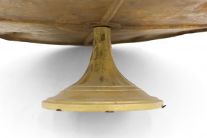 French Art Nouveau round bronze dore compote with twig design handles and floral relief on pedestal base (signed ALBERT CHEUREL SILOS).