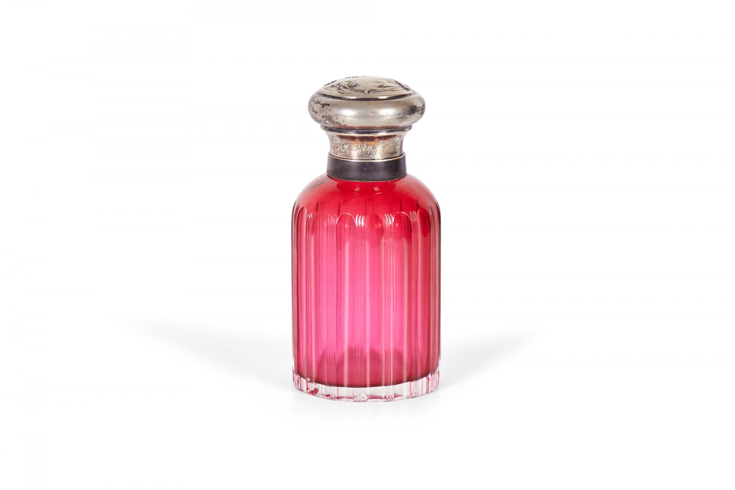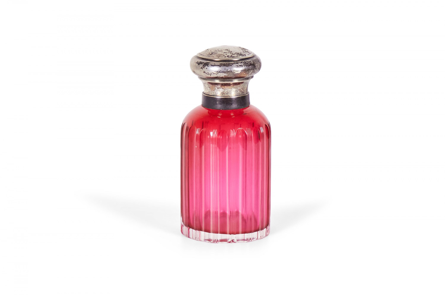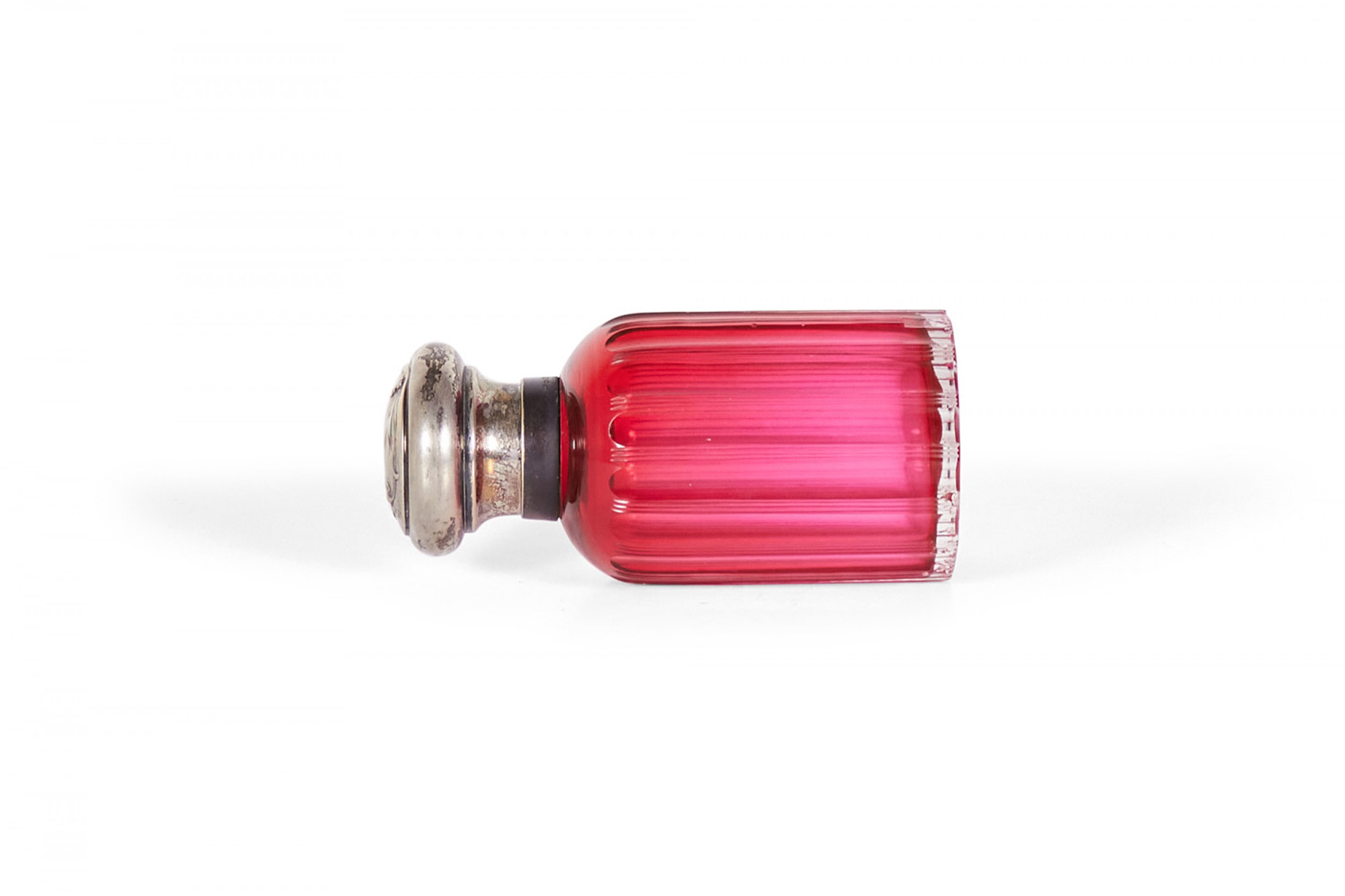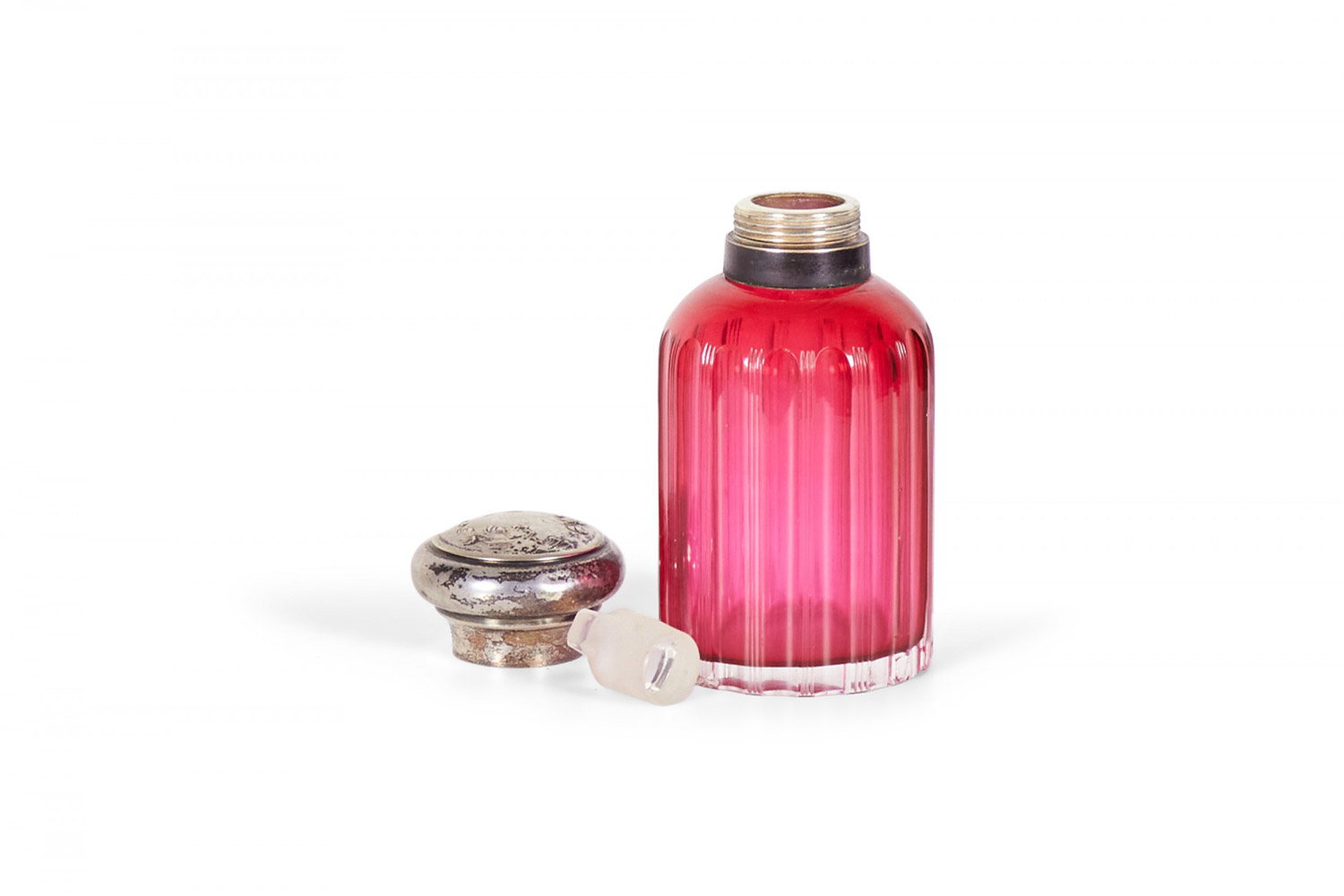 2 French Art Nouveau cranberry glass perfume bottles with silver cover (PRICED EACH)