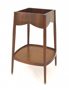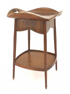 Style: Art Nouveau Materials & Techniques: Copper, maple, walnut, burl, inlaid Category: Tables