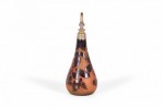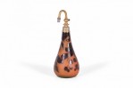French Art Nouveau dark pink glass perfume atomizer with floral design and metal top (signed D'ARGUENTAL)