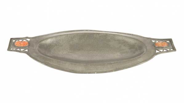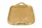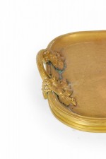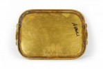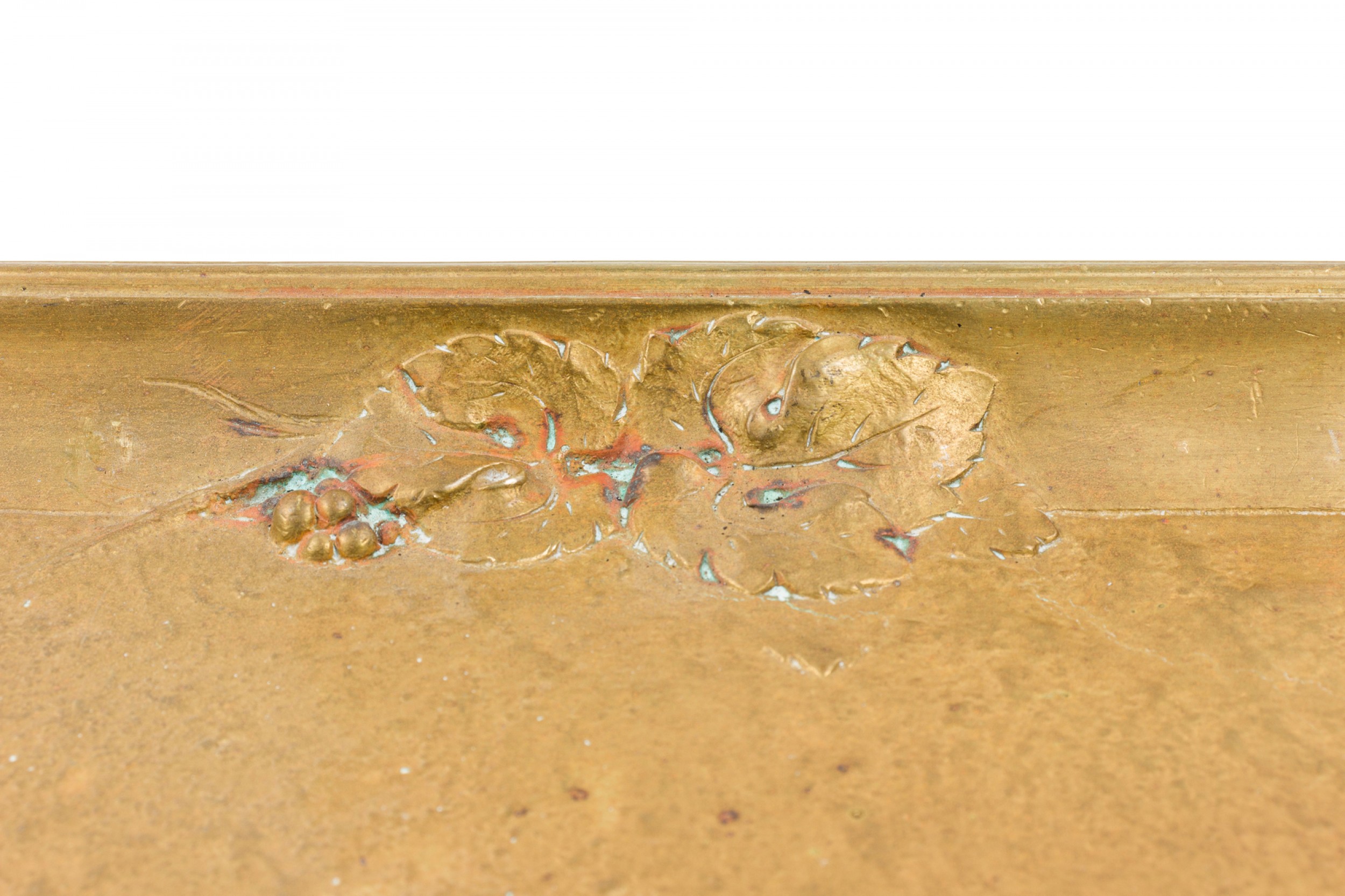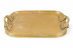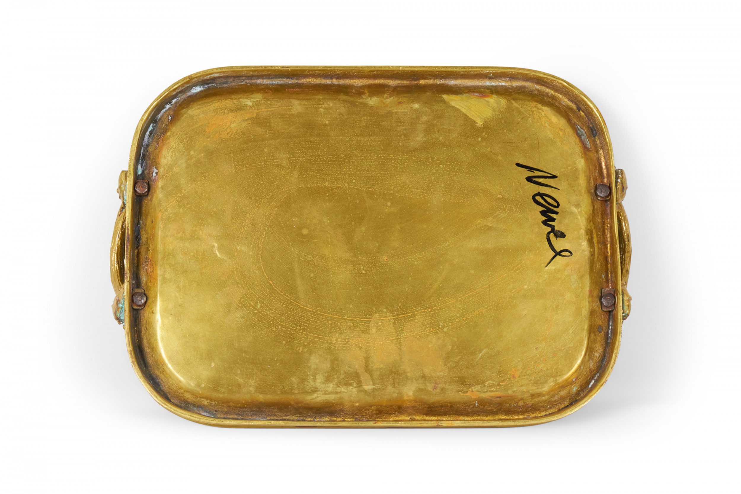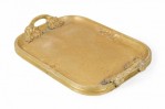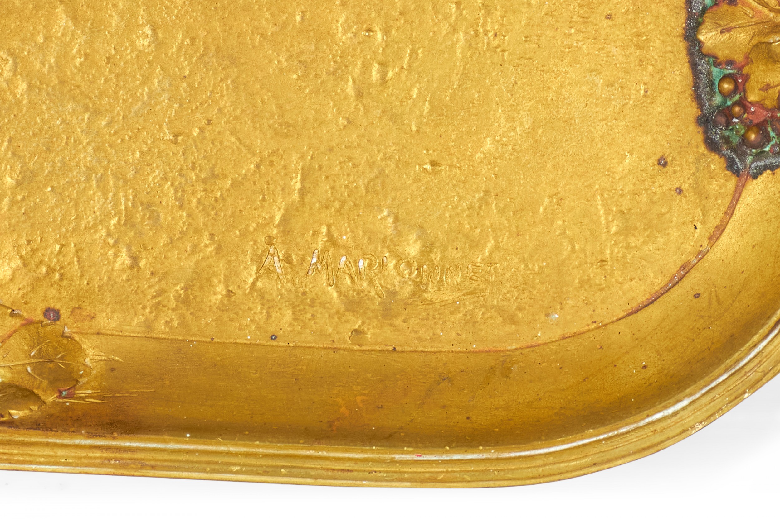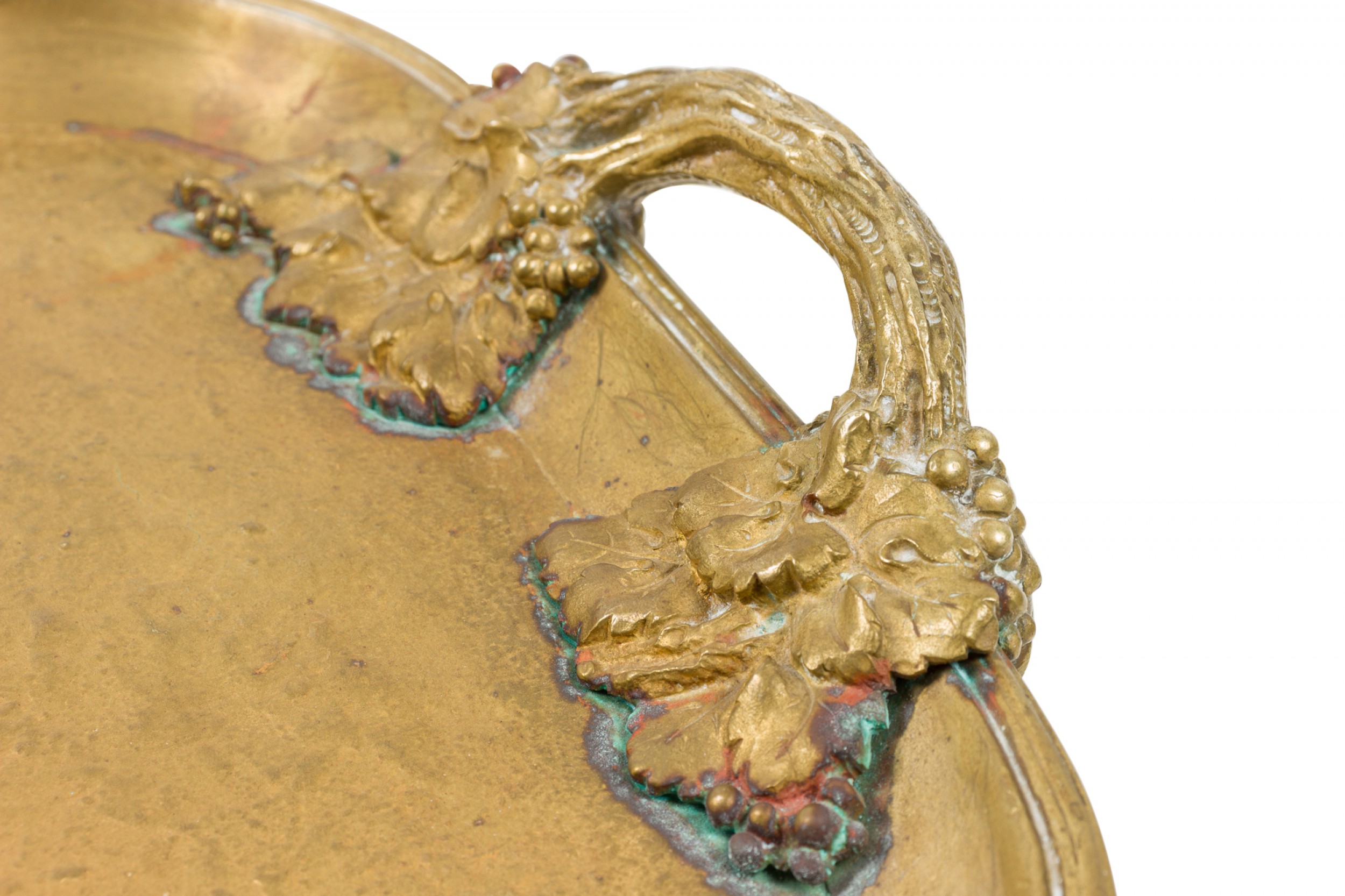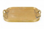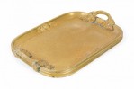 French Art Nouveau gilt bronze serving tray with side handles and floral design with a fluted edge (signed: MARIONNET)..