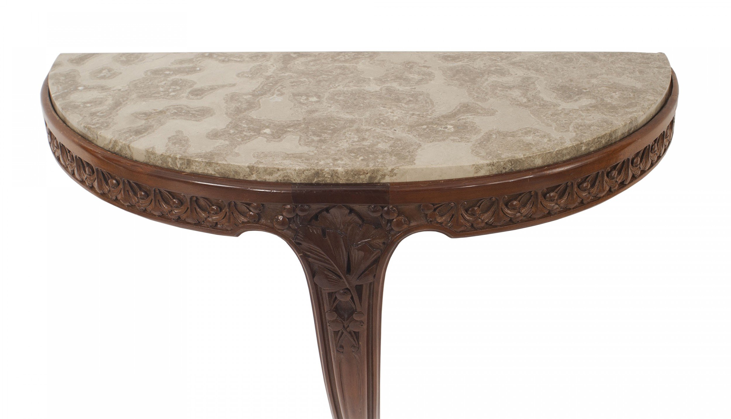 Style: Art Nouveau Materials & Techniques: Carved, mahogany, marble Category: Tables, Dining Room