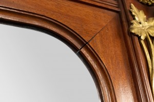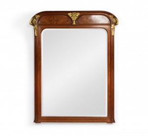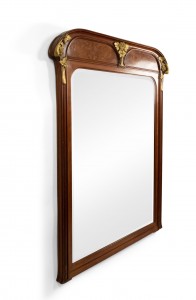Style: Art Nouveau Materials & Techniques: Metal, wood, bronze, walnut, beveled, burl Category: Mirrors