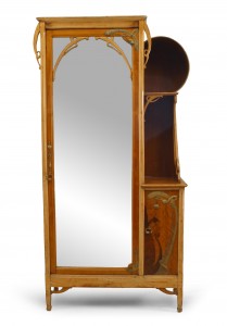 Style: Art Nouveau Materials & Techniques: Brass, maple, inlaid Category: Cabinets & Case Goods, Bedroom