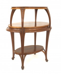 Style: Art Nouveau Materials & Techniques: Wood, walnut, carved Category: Tables