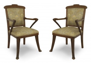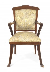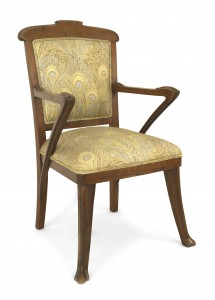Style: Art Nouveau Materials & Techniques: Fabric, walnut, wood Category: Seating, Office/Library, Dining Room
