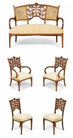 French Art Nouveau Walnut 5-Piece Living Room Set