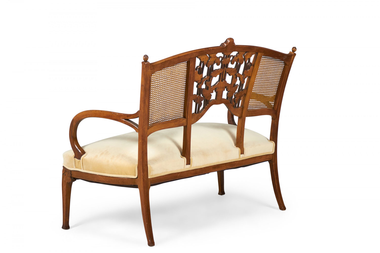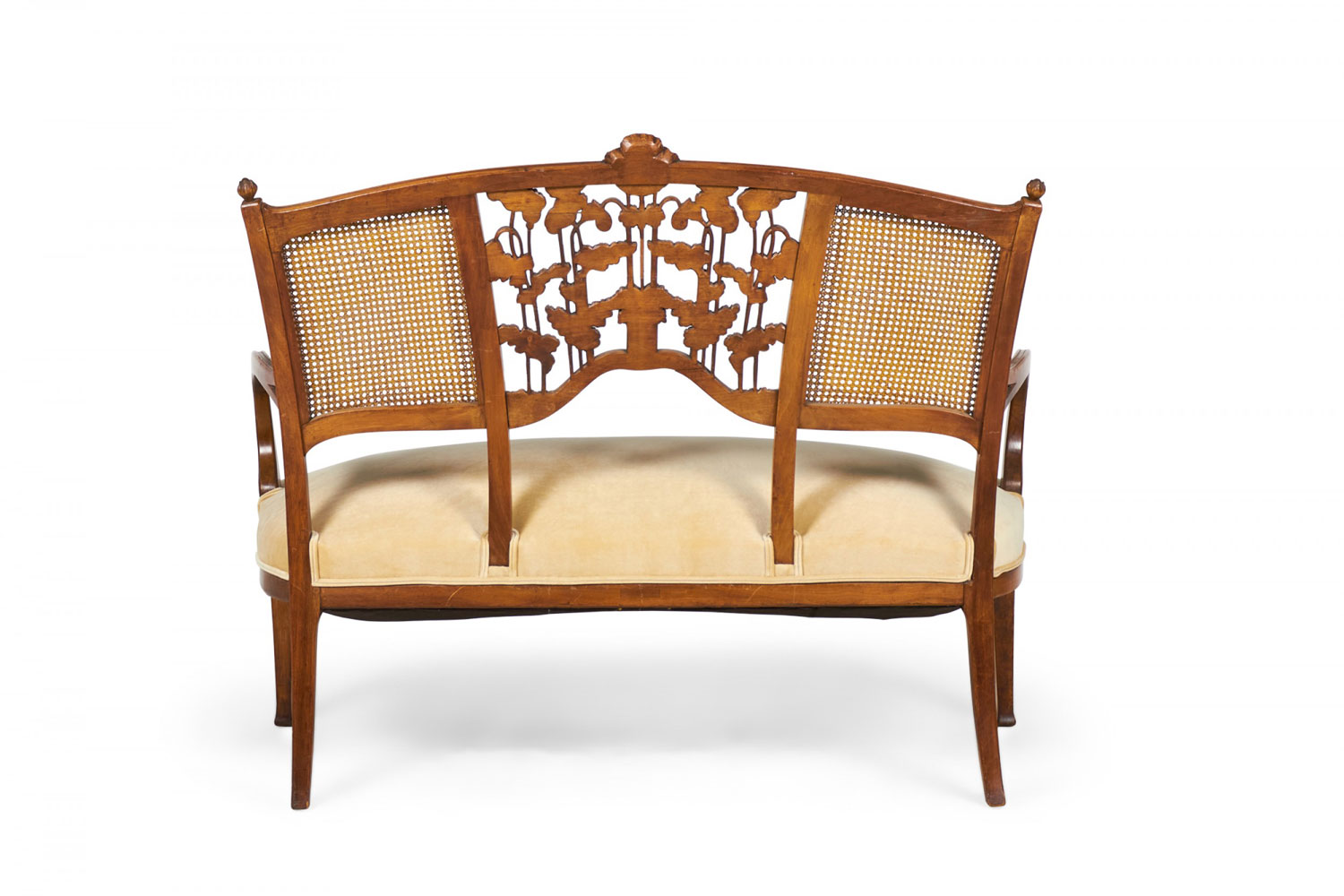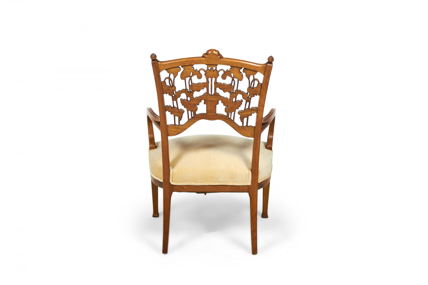 Style: Art Nouveau Materials & Techniques: Carved, upholstered, velvet, walnut, wood Category: Seating