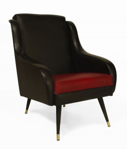 Style: Mid-Century Materials & Techniques: Brass, leather Category: Seating