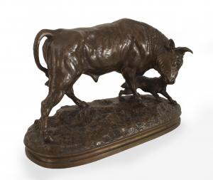 French Bronze Bull and Dog