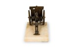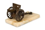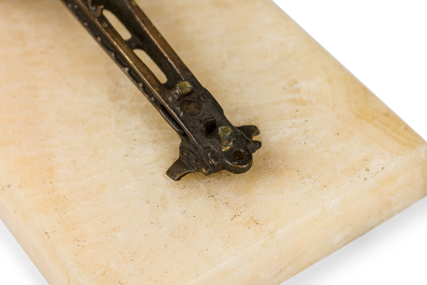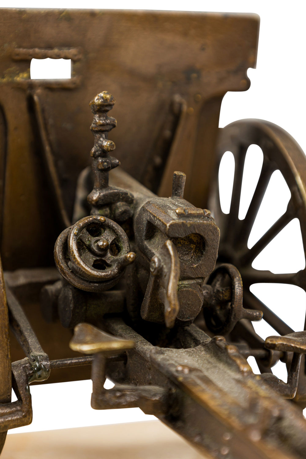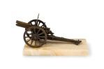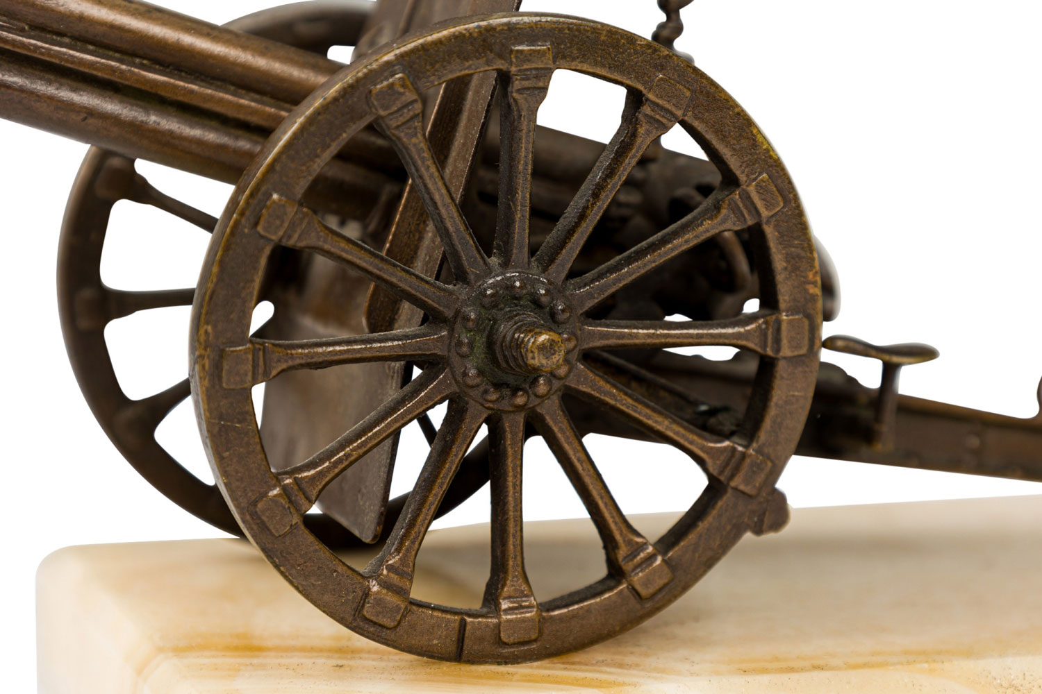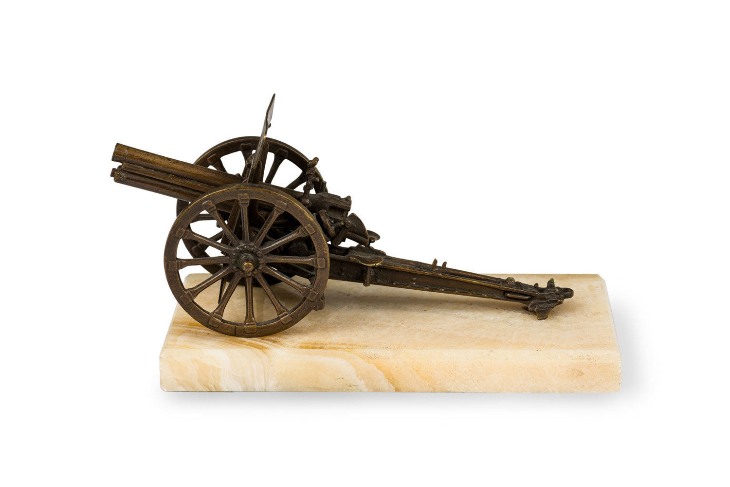 French bronze World War I (19/20th Century) field cannon on rectangular white marble base