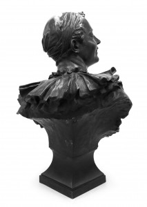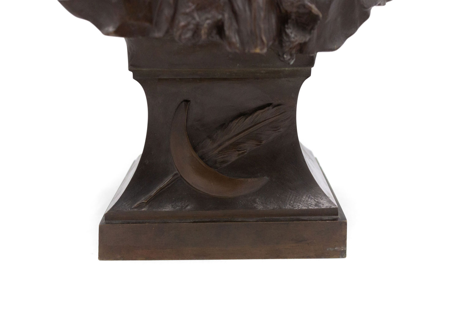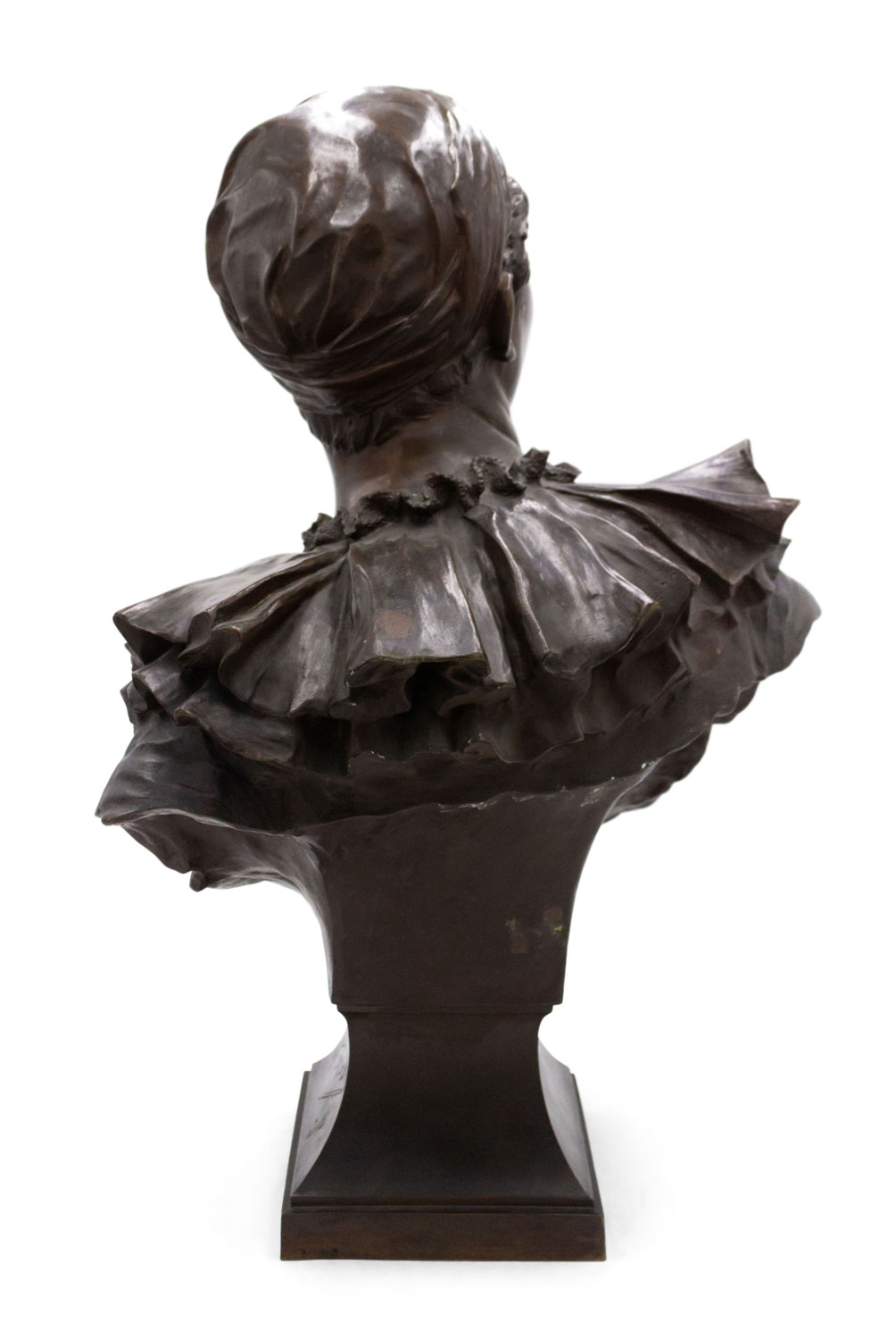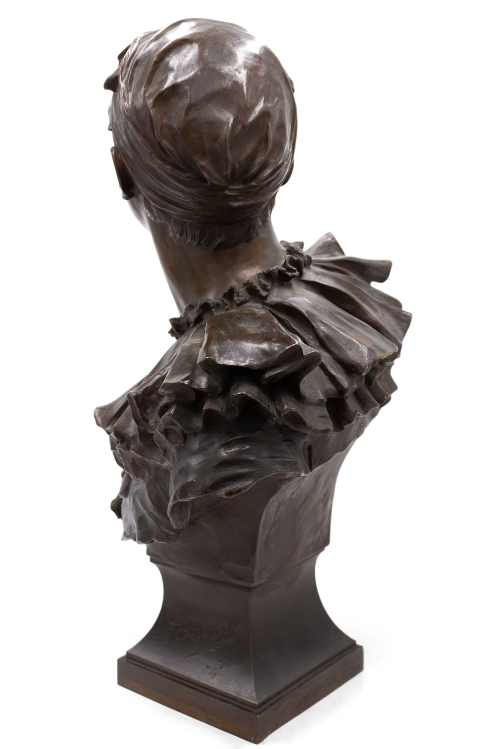 French bronze life size bust of harlequin on square shaped base (19/20th Century) (signed, Andre Laoust).