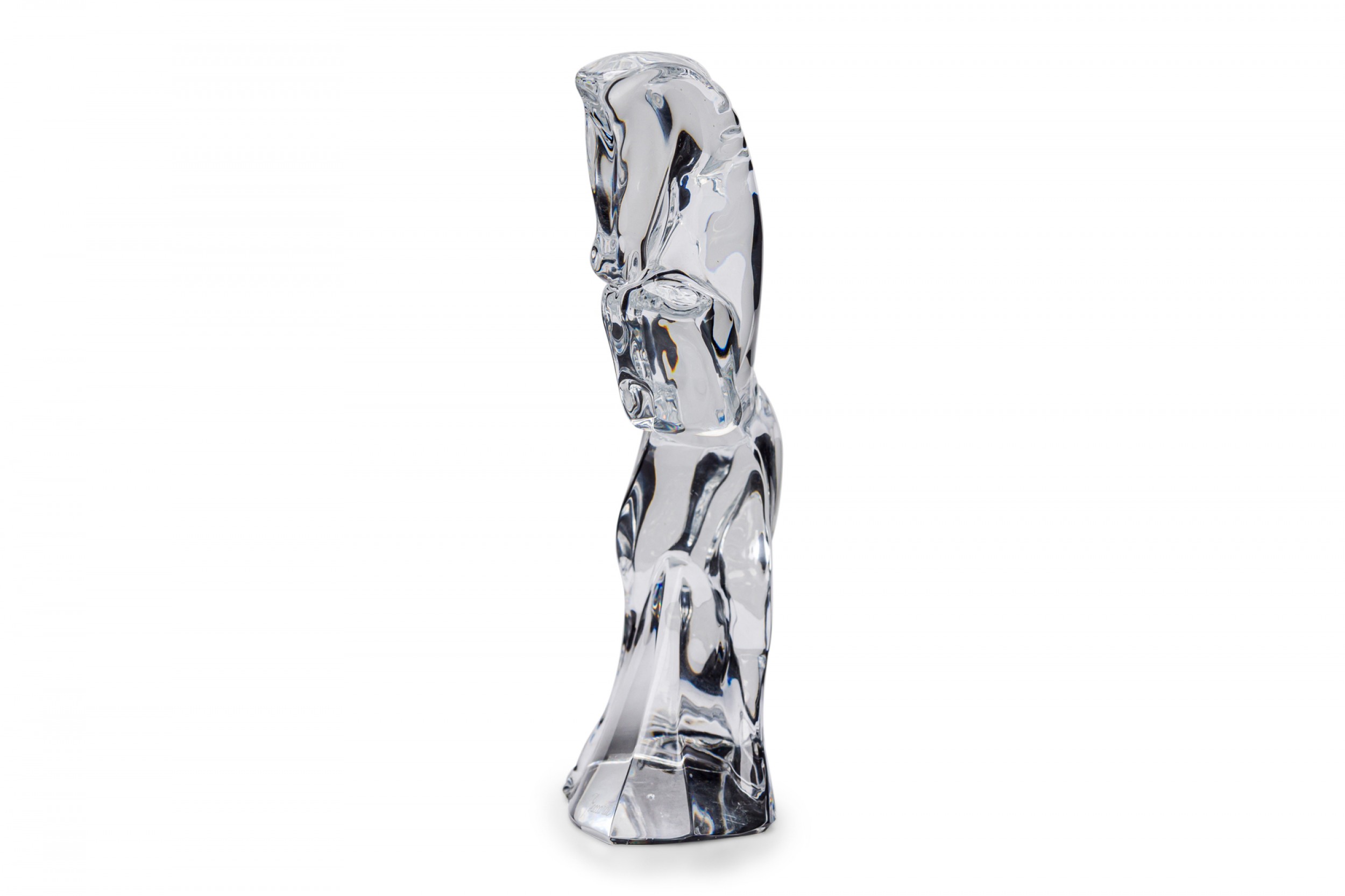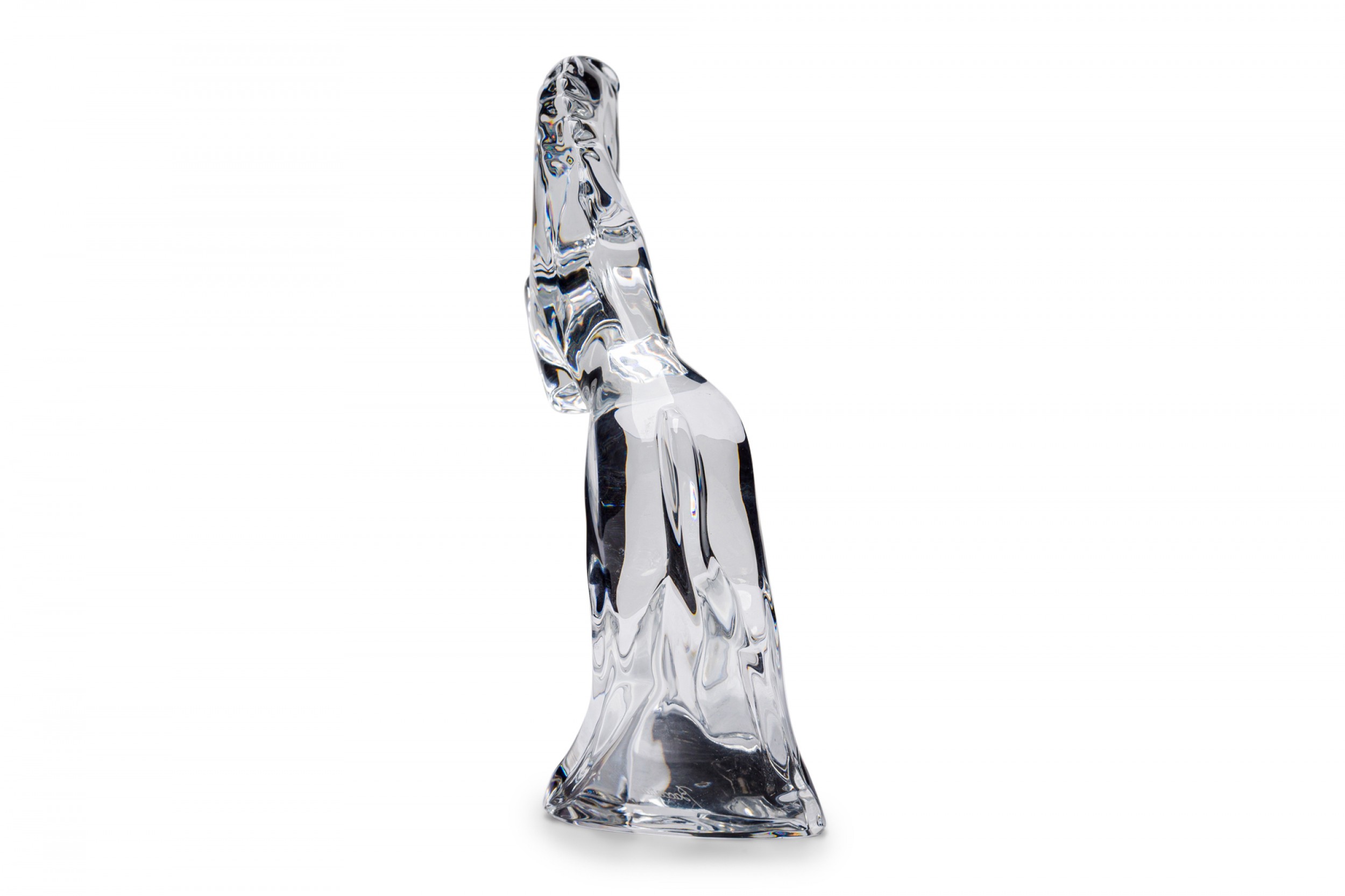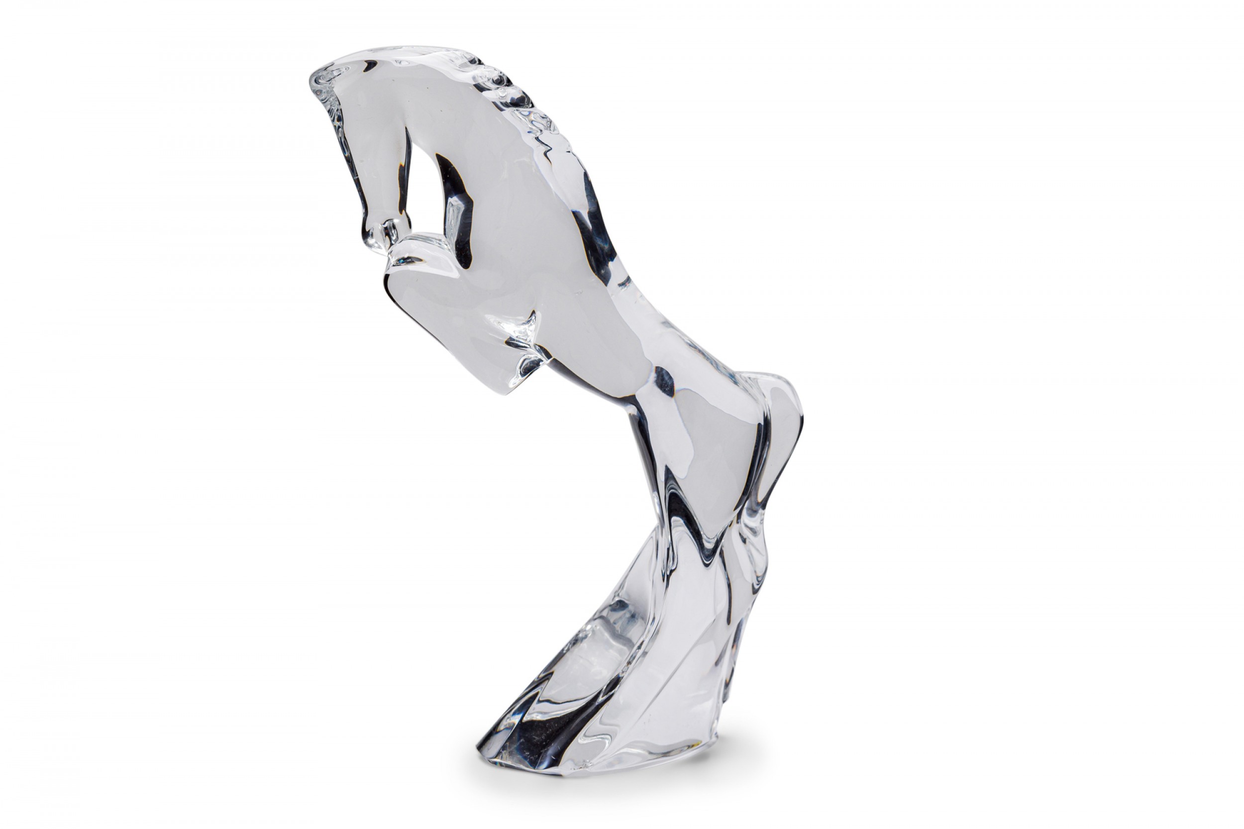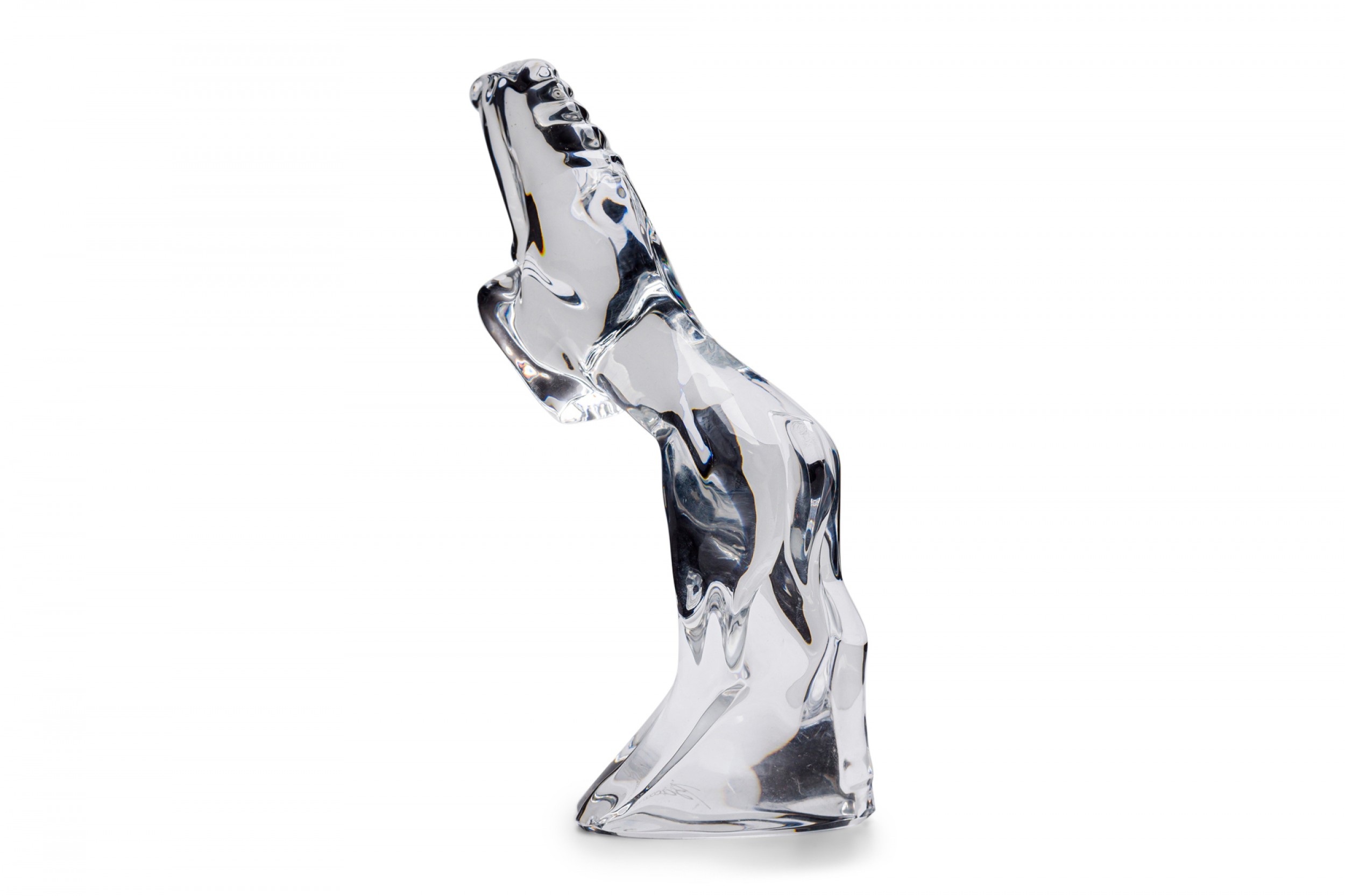 French contemporary clear hand-blown crystal figure of a horse in rearing motion. (BACCARAT).