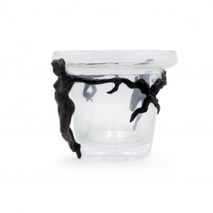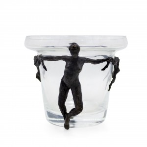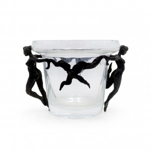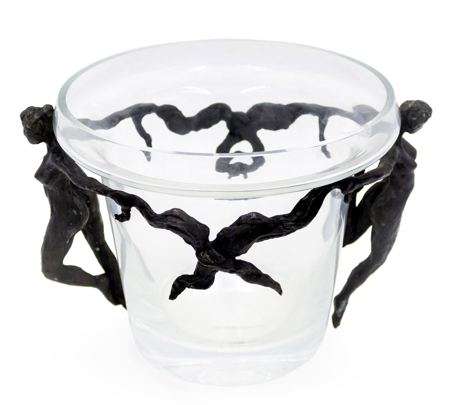2 French Post-War Design (1980/90s) crystal champagne bucket (centerpiece) supporting a ring of bronze female figures as handles (signed LaROCHE) (PRICED EACH).