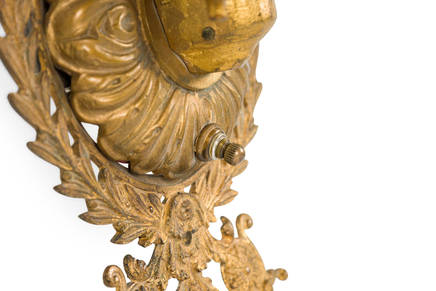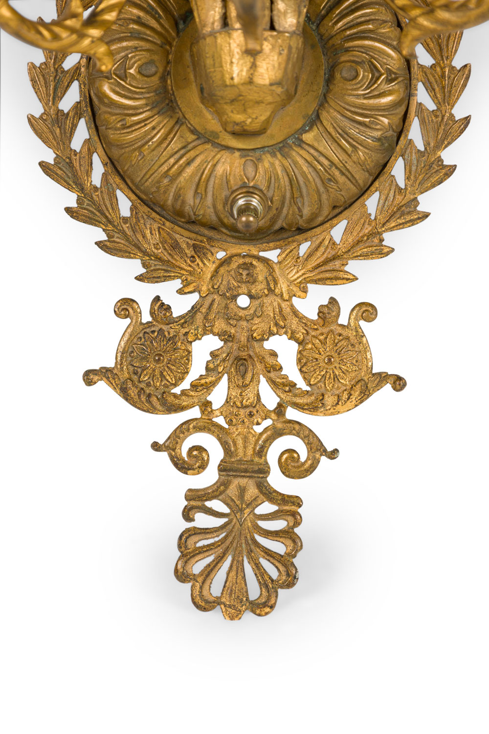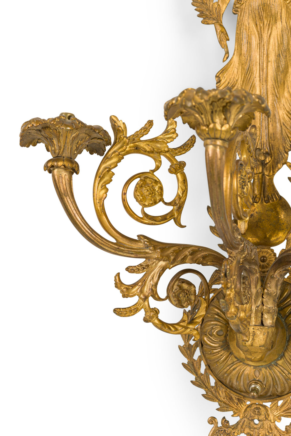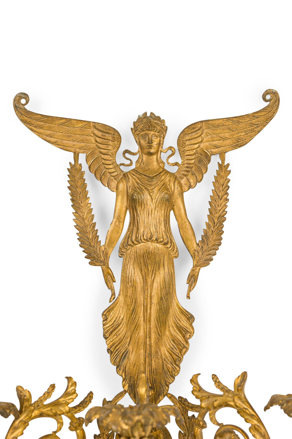 French Empire 3-arm gilt bronze wall sconce with a winged figure holding 2 laural branches (can be electrified)