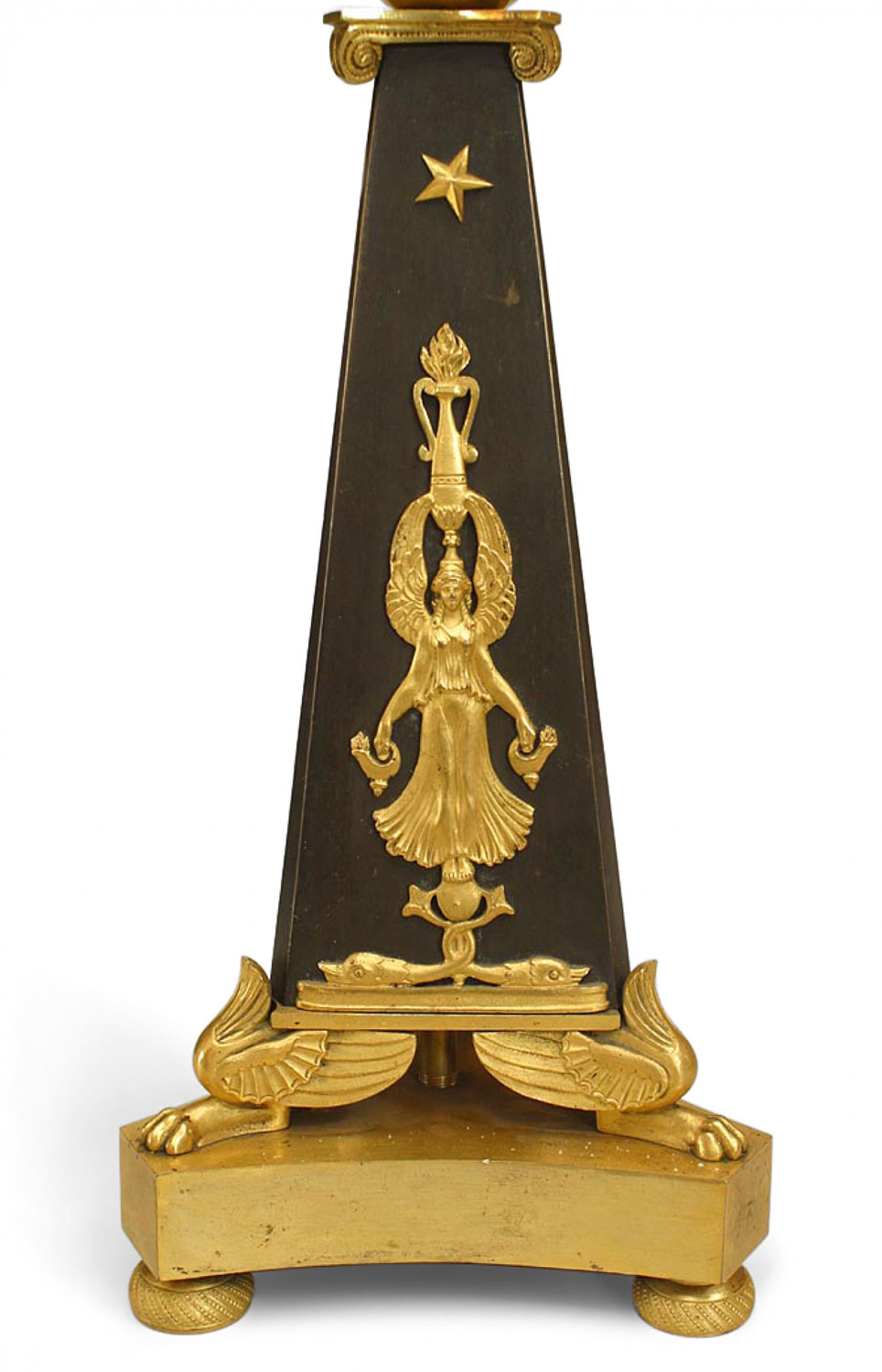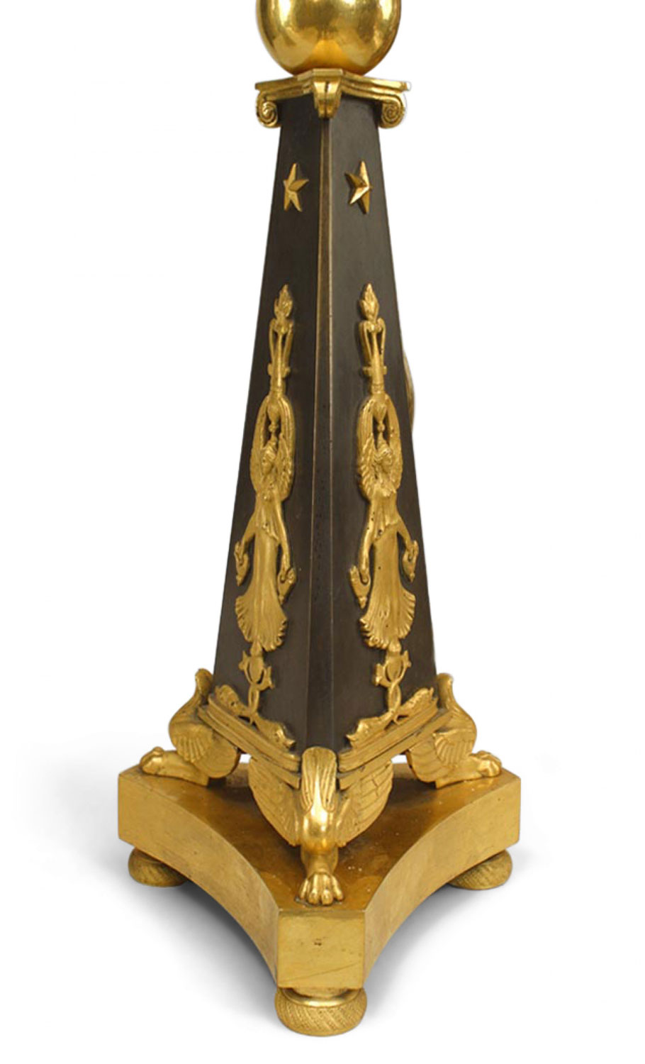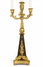 Pair of French Empire Black and Gilt Candelabras with Bird Figures