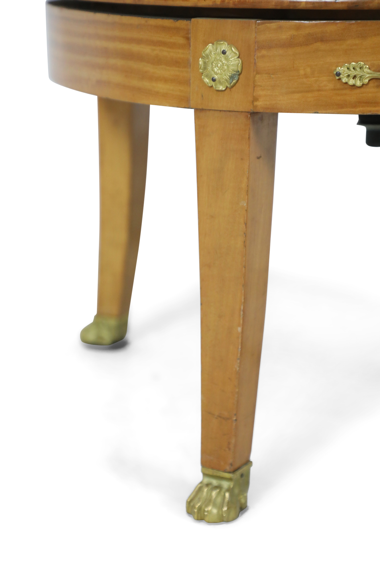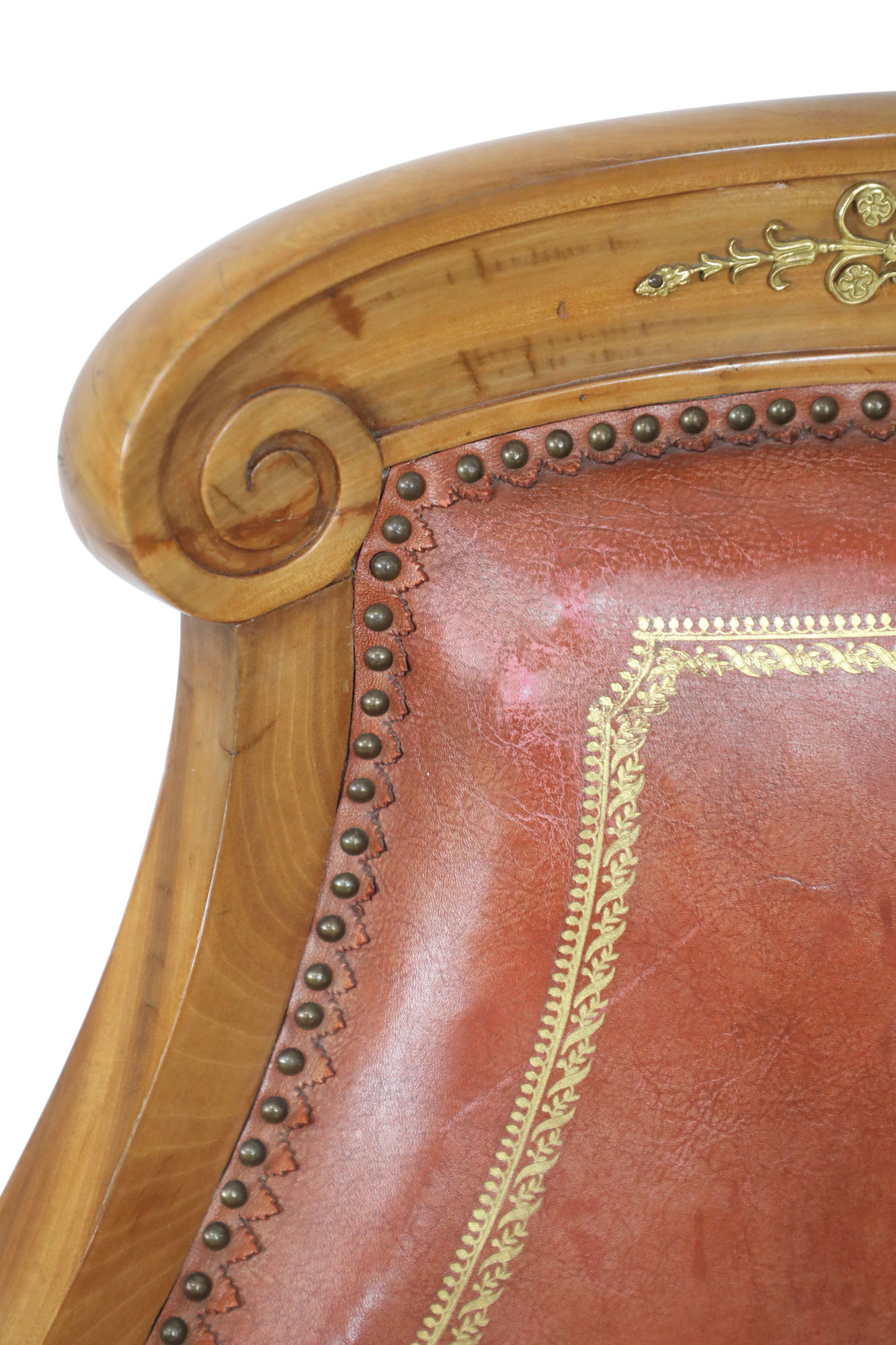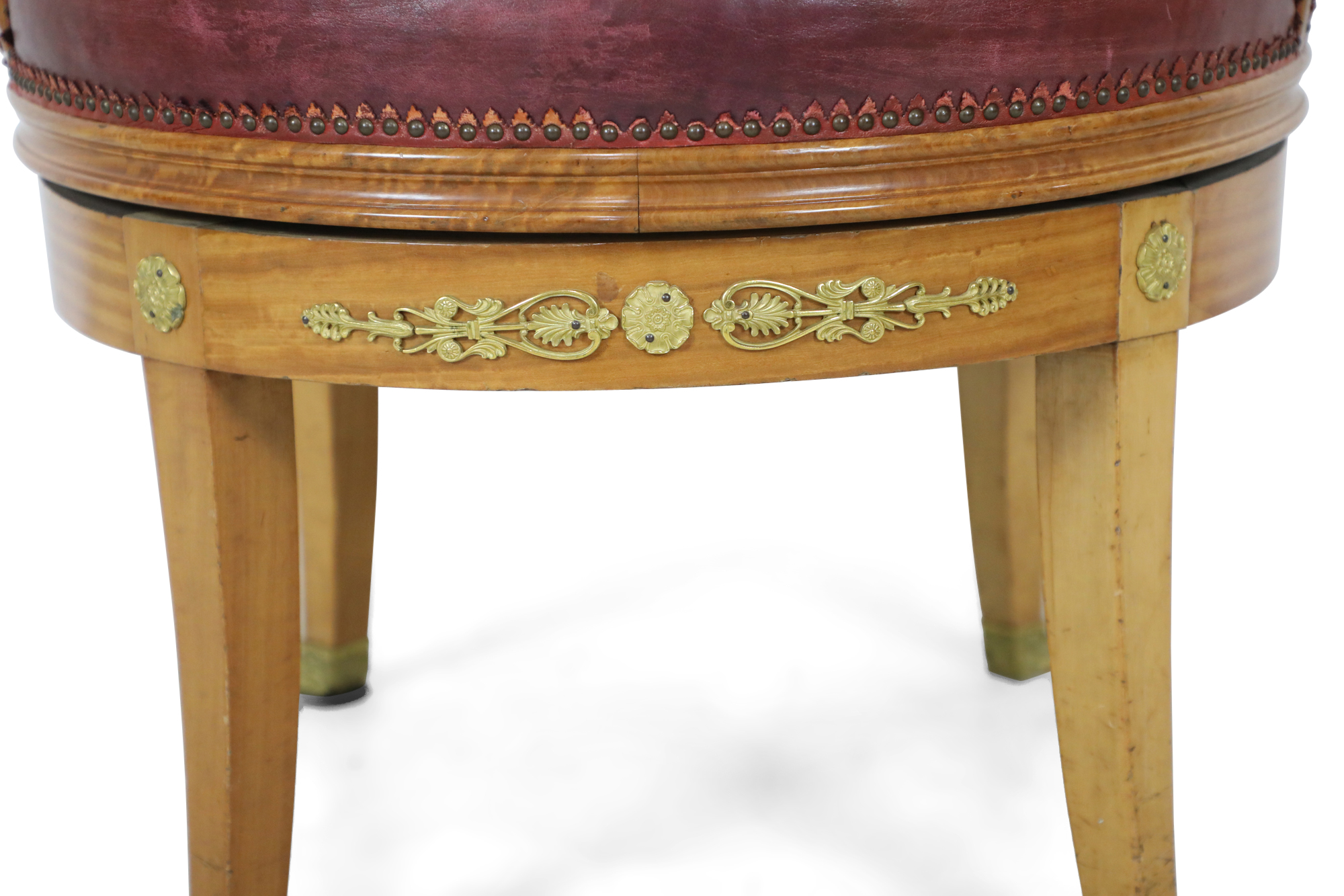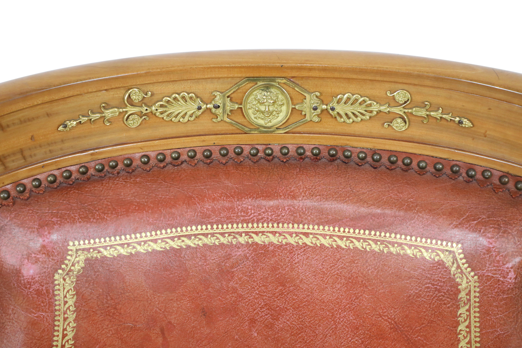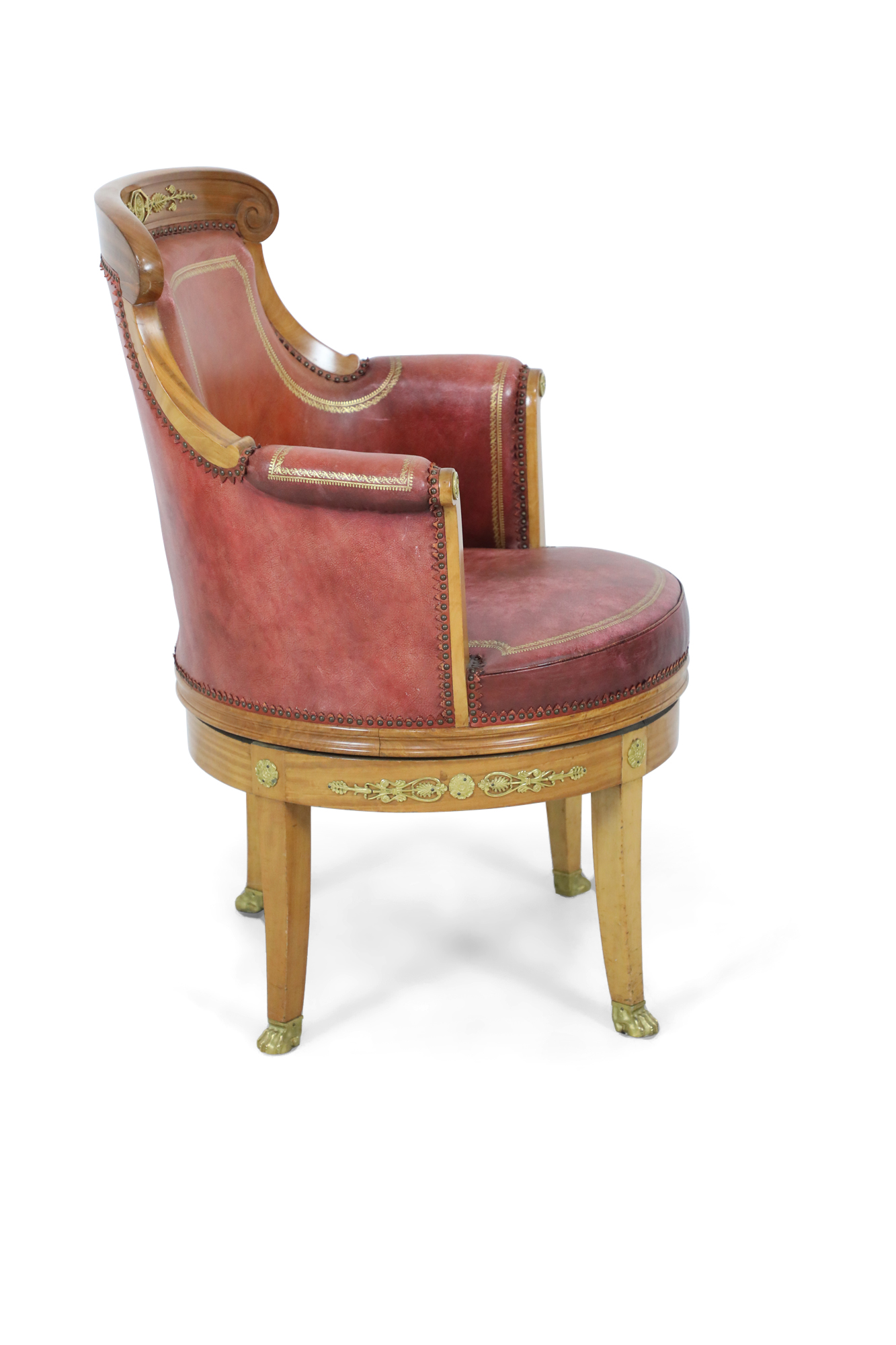 French Empire Blond Mahogany Swivel Leather Chair With Bronze Trim