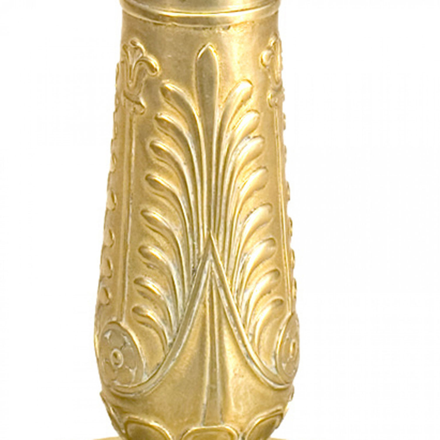 PAIR of French Empire-style (19/20th Century) bronze candlesticks with round base with fluted and decorative design supporting a tapered column (PRICED AS PAIR)