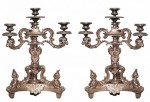 PAIR of French Empire bronze dore 4 arm candelabras with figural sphinx decorations on the triangular bases. (PRICED AS PAIR)
